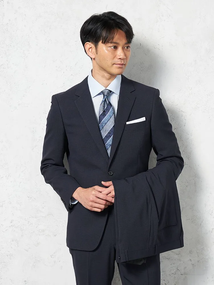 【即納】【WEB限定】スーツ2つボタンネイビーシャドウストライプ上下ウォッシャブル3シーズン対応