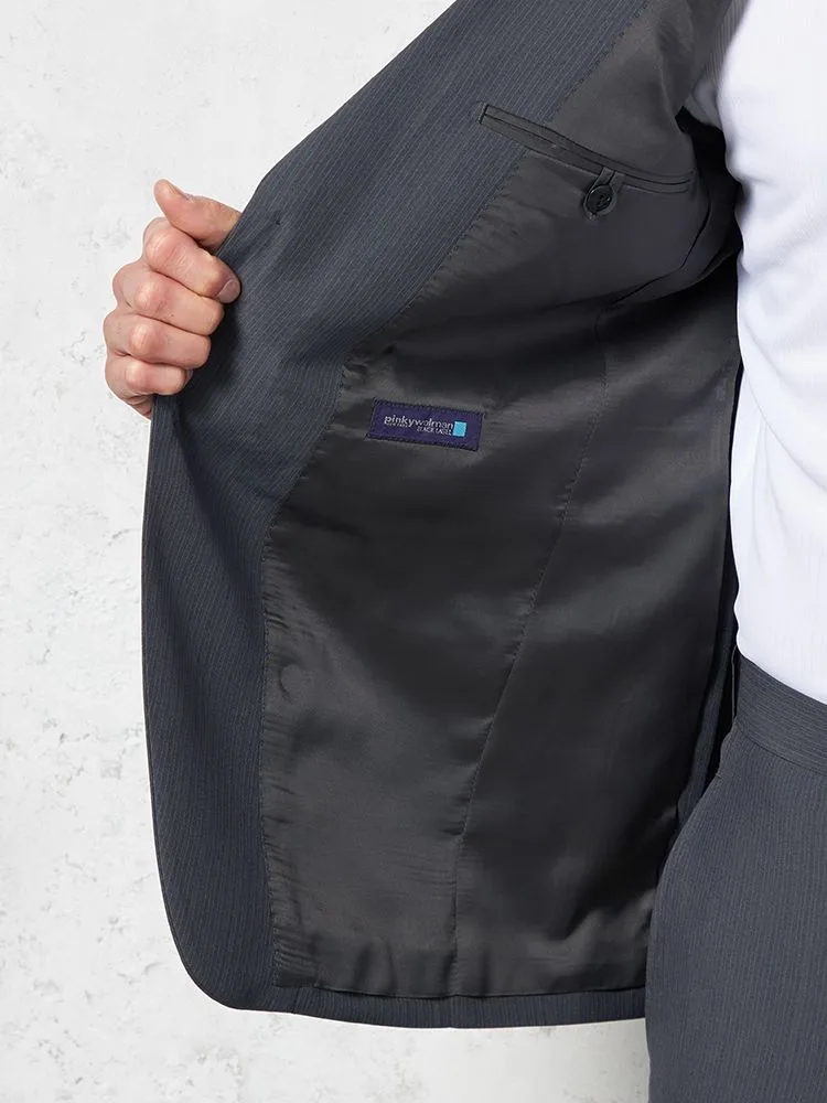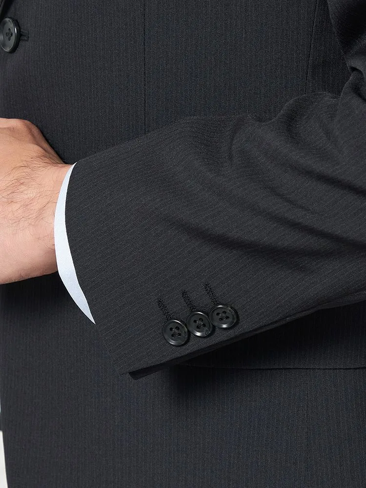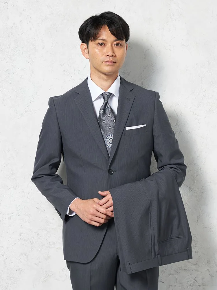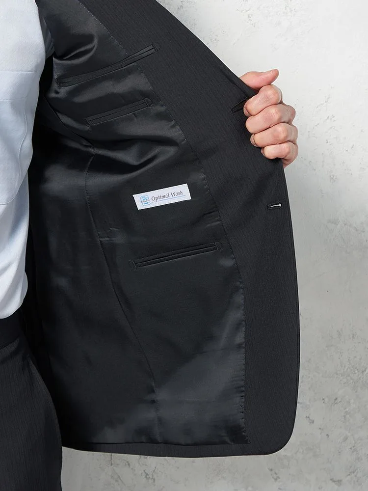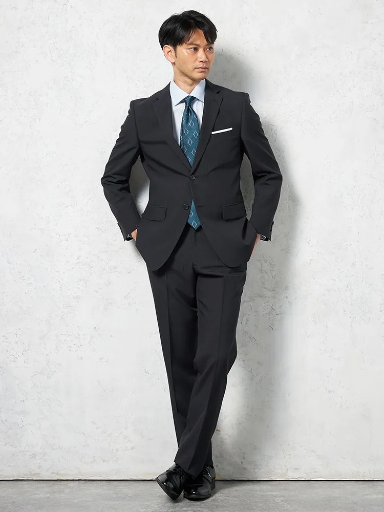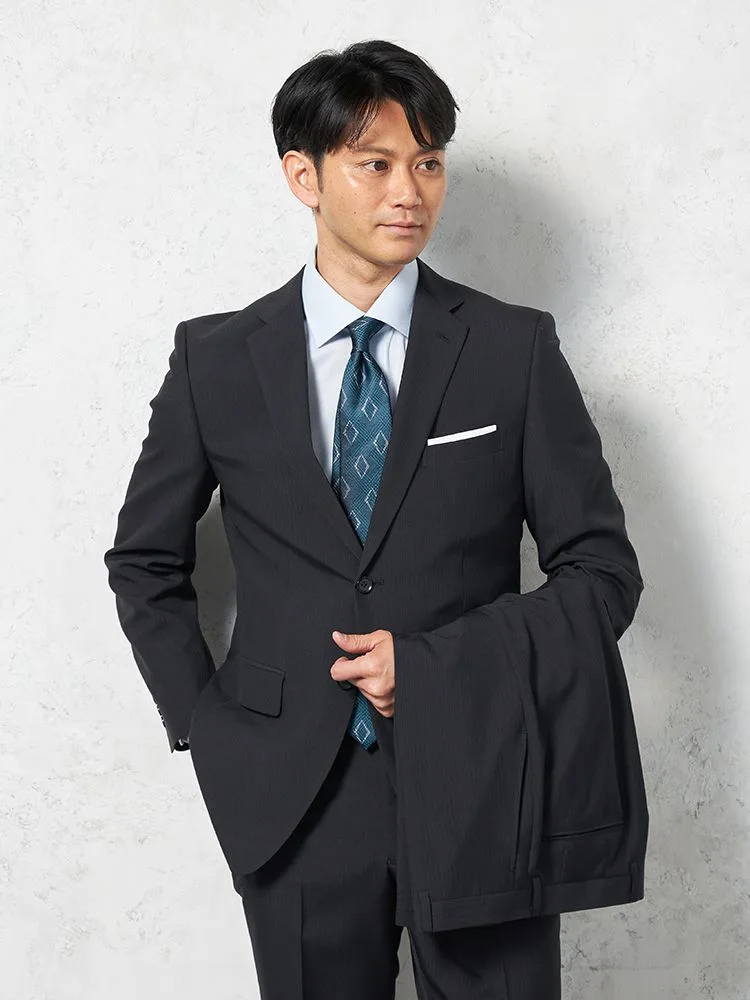 【上下ウォッシャブル】スーツ 2つボタン ツーパンツ イージーケア ストライプ pinky wolman(ブラック)
