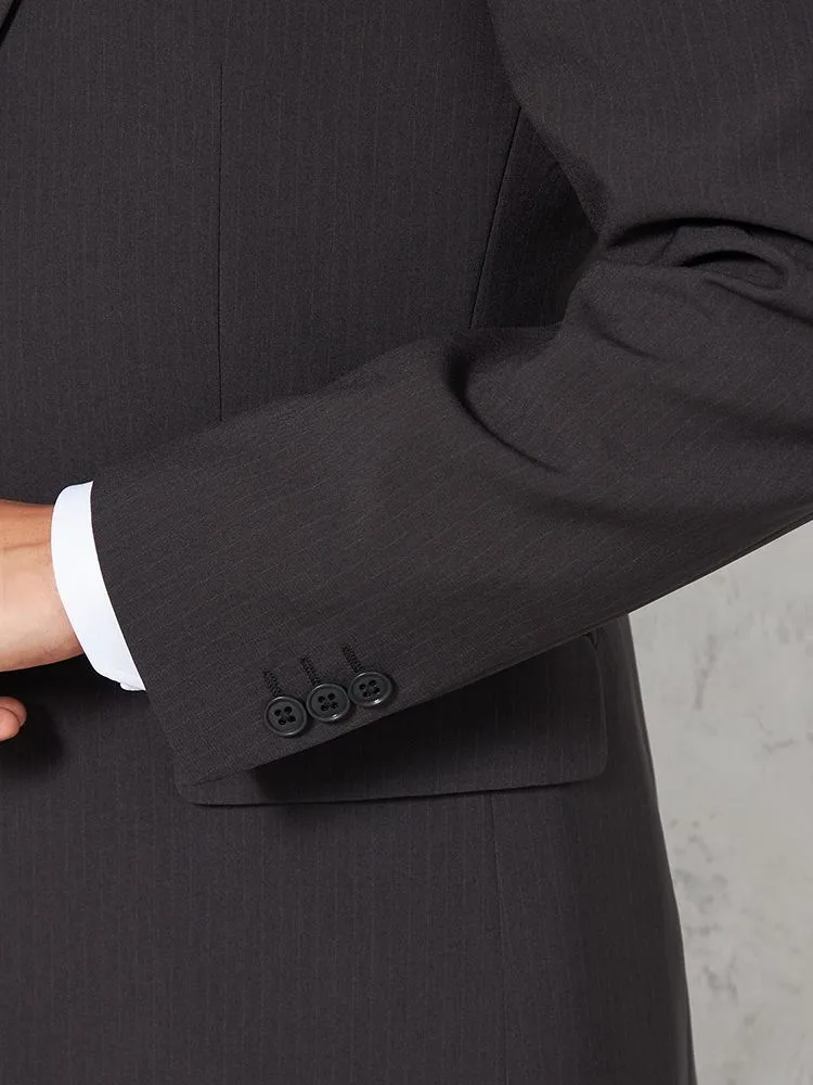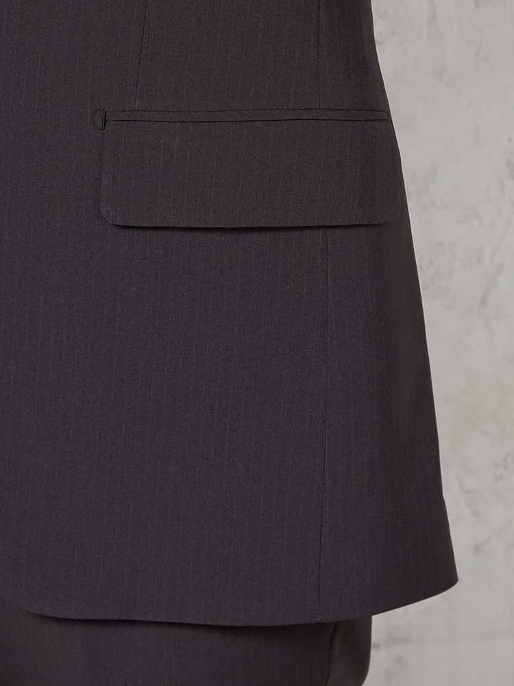シックで落ち着いたビジネススタイルを叶える、グレーのピンストライプスーツ。