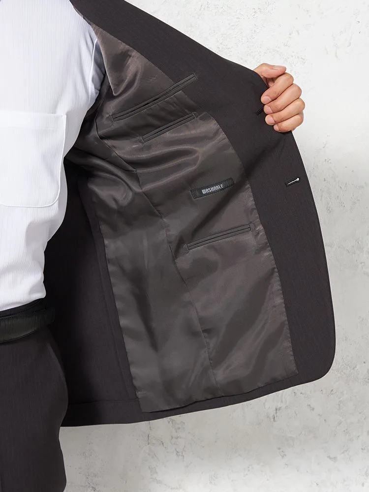 【即納】スーツ 2つボタン【WEB限定】上下ウォッシャブル グレー ストライプ