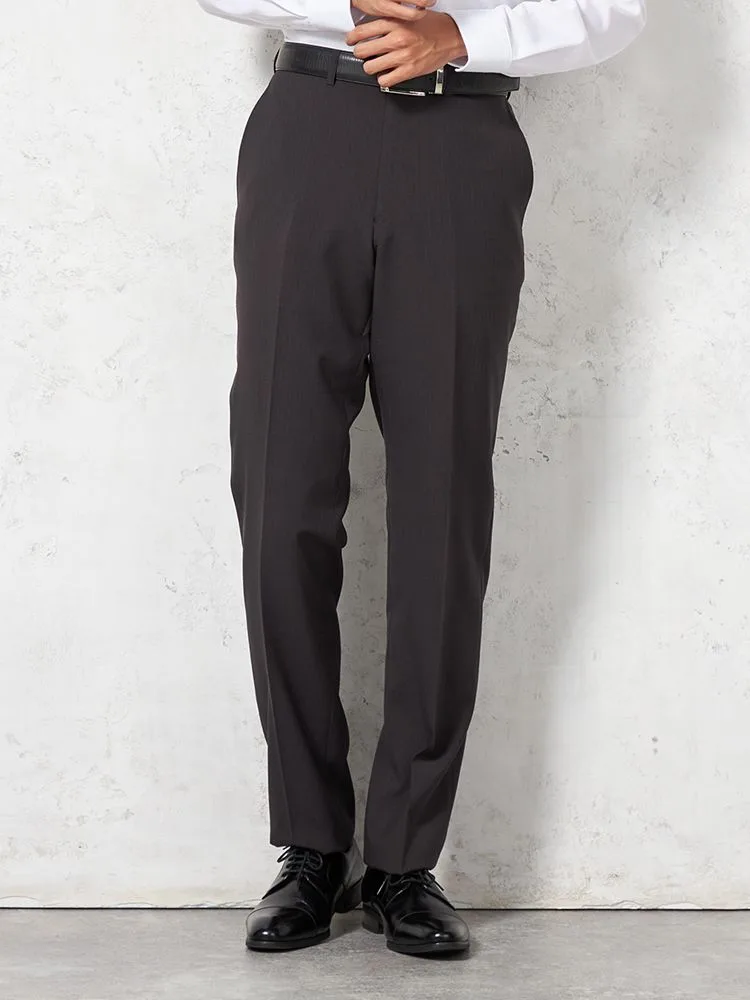 パンツの腰回りに生地の折り込みがなく、スッキリとしたシルエットを実現します。シンプルで洗練された印象を与え、すっきりとした着こなしが可能です。