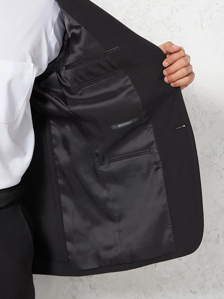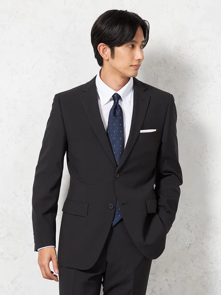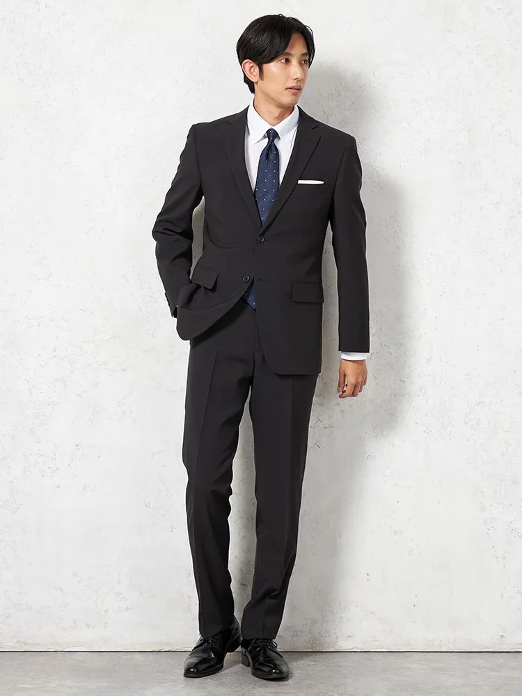 【即納】スーツ 2つボタン【WEB限定】上下ウォッシャブル ブラック ストライプ