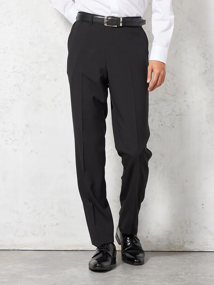 パンツの腰回りに生地の折り込みがなく、スッキリとしたシルエットを実現します。シンプルで洗練された印象を与え、すっきりとした着こなしが可能です。