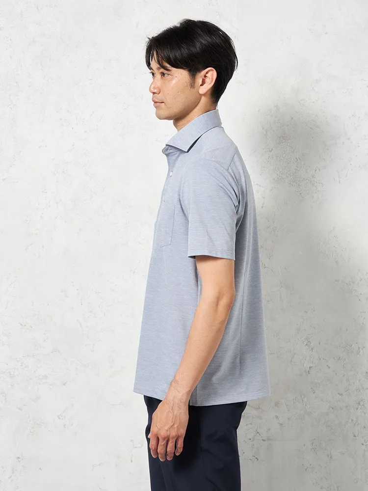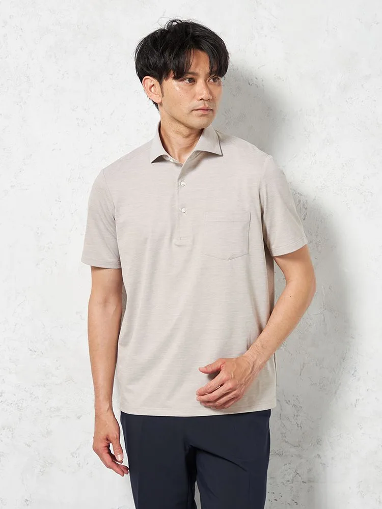 【吸湿冷感】完全ノーアイロン 半袖 アイポロシャツ カッタウェイ 無地 i-shirt 春夏(ベージュ)