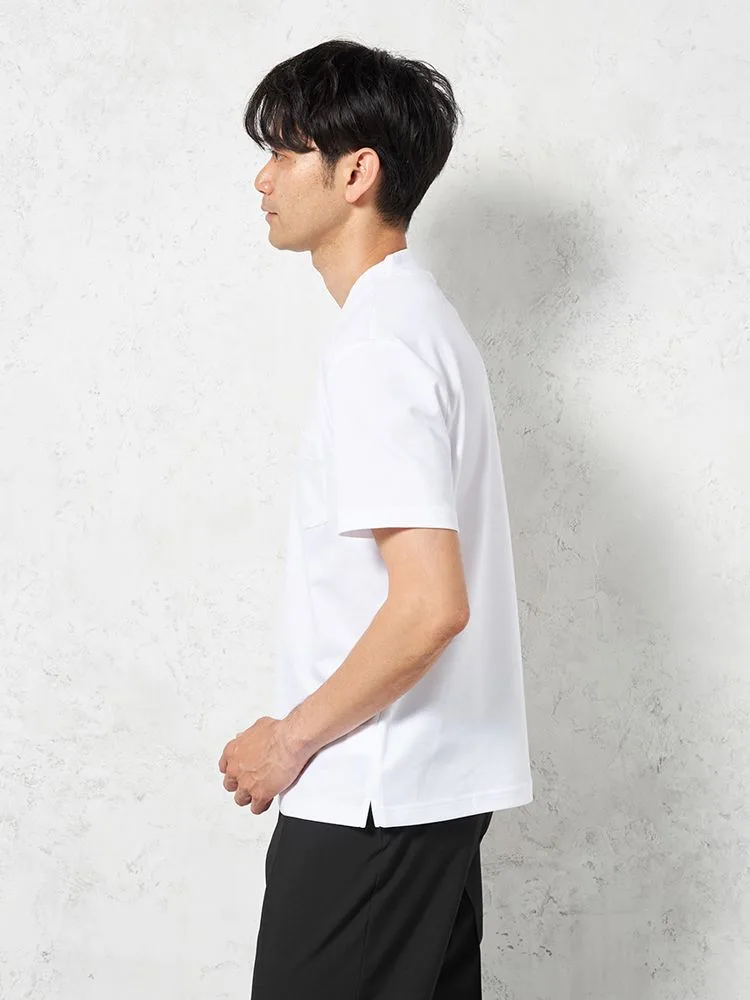 【吸湿冷感】完全ノーアイロン 半袖 アイTシャツ スロープネック 無地 i-shirt 春夏(ホワイト)