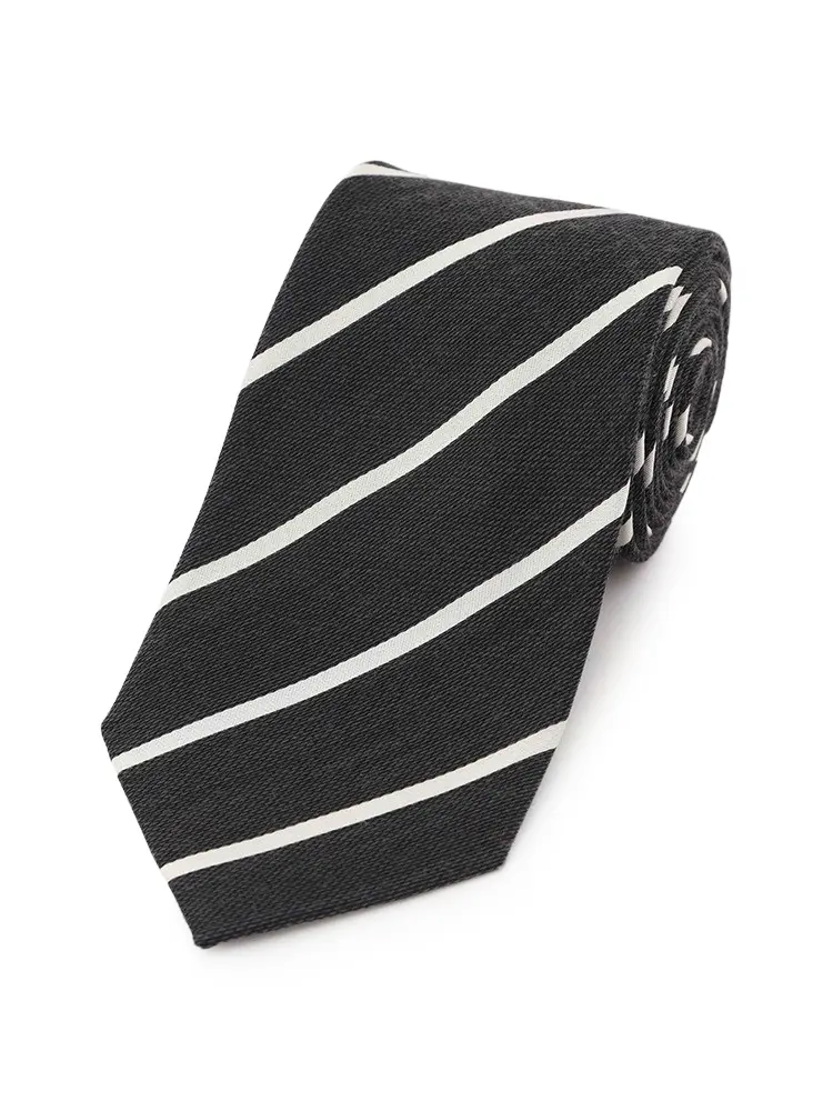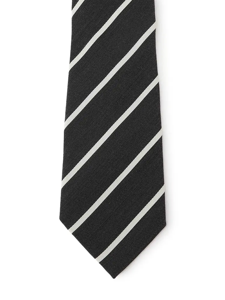 【リッケンバッカーブラック】 シルクウールネクタイ ストライプ レギュラー 秋冬(ブラック)