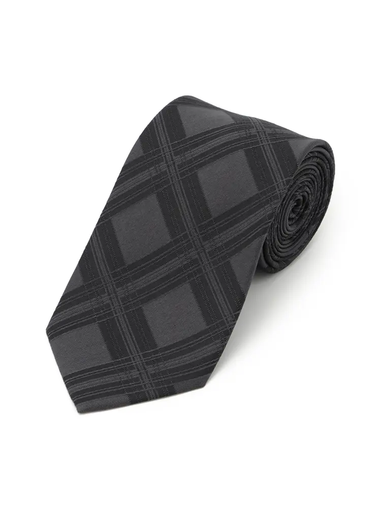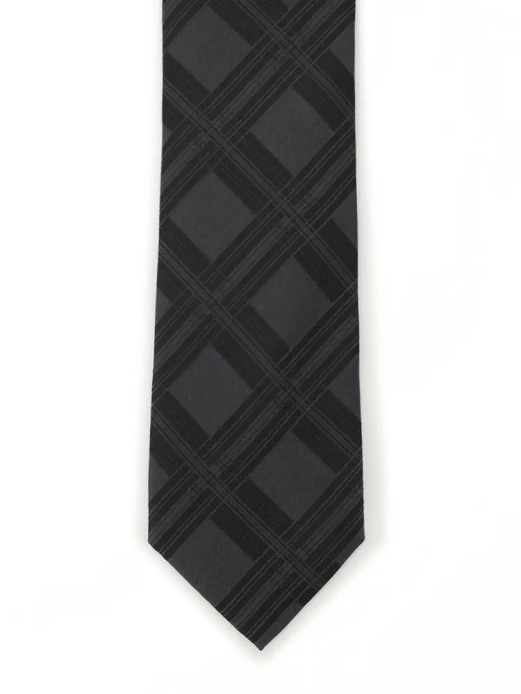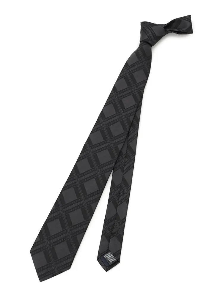 【リスペクトネロ】シルクネクタイ チェック 7.5cm 秋冬(C.グレー)