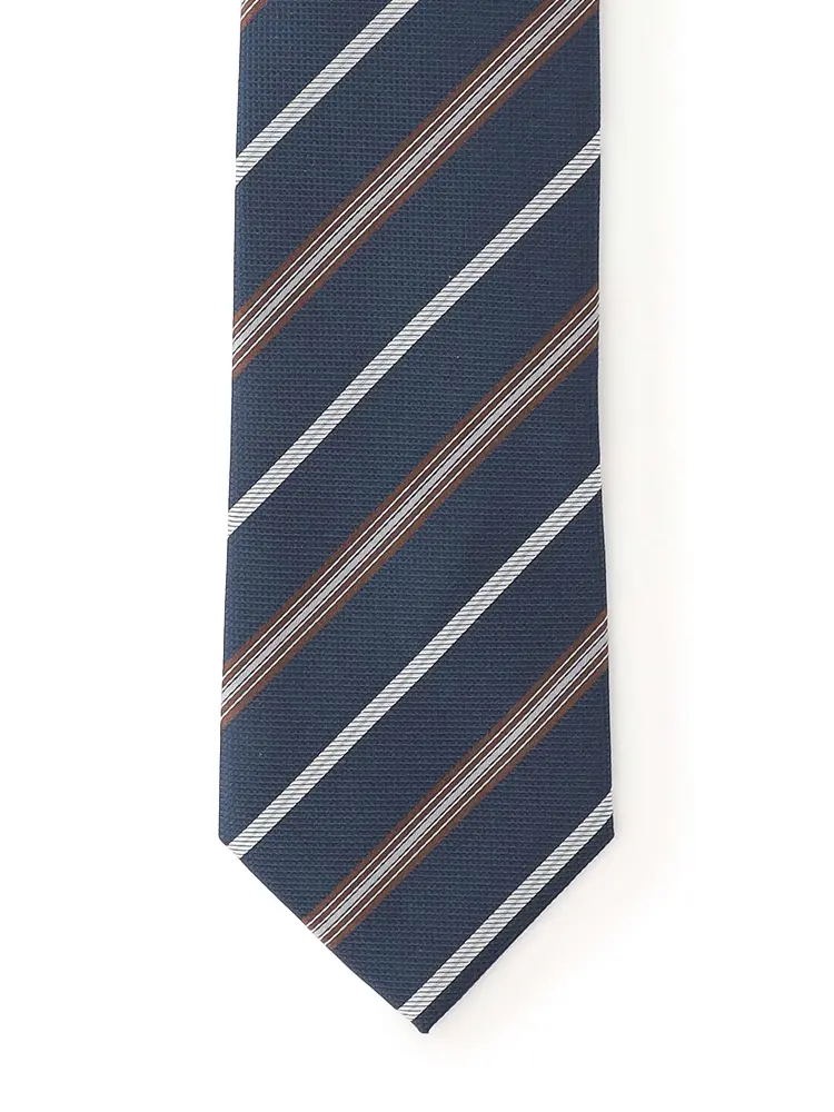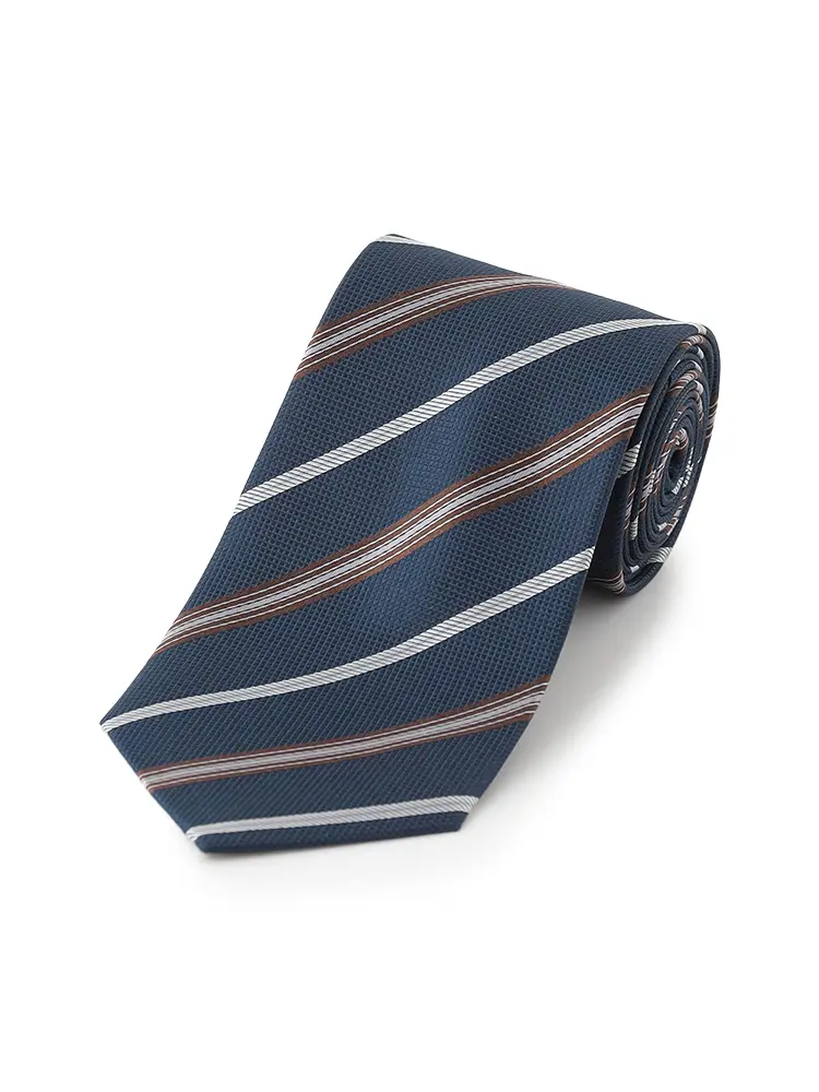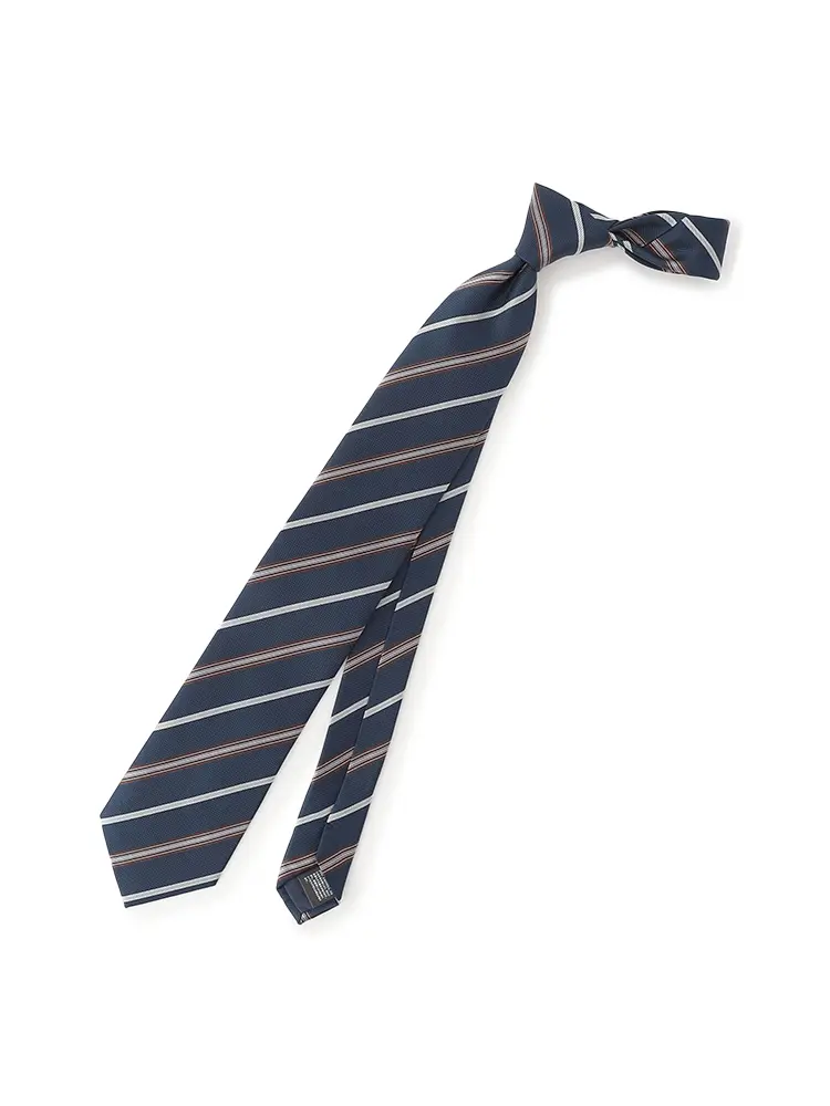 【シルク混】ネクタイレギュラーリクルートタイネイビーストライプnero通年