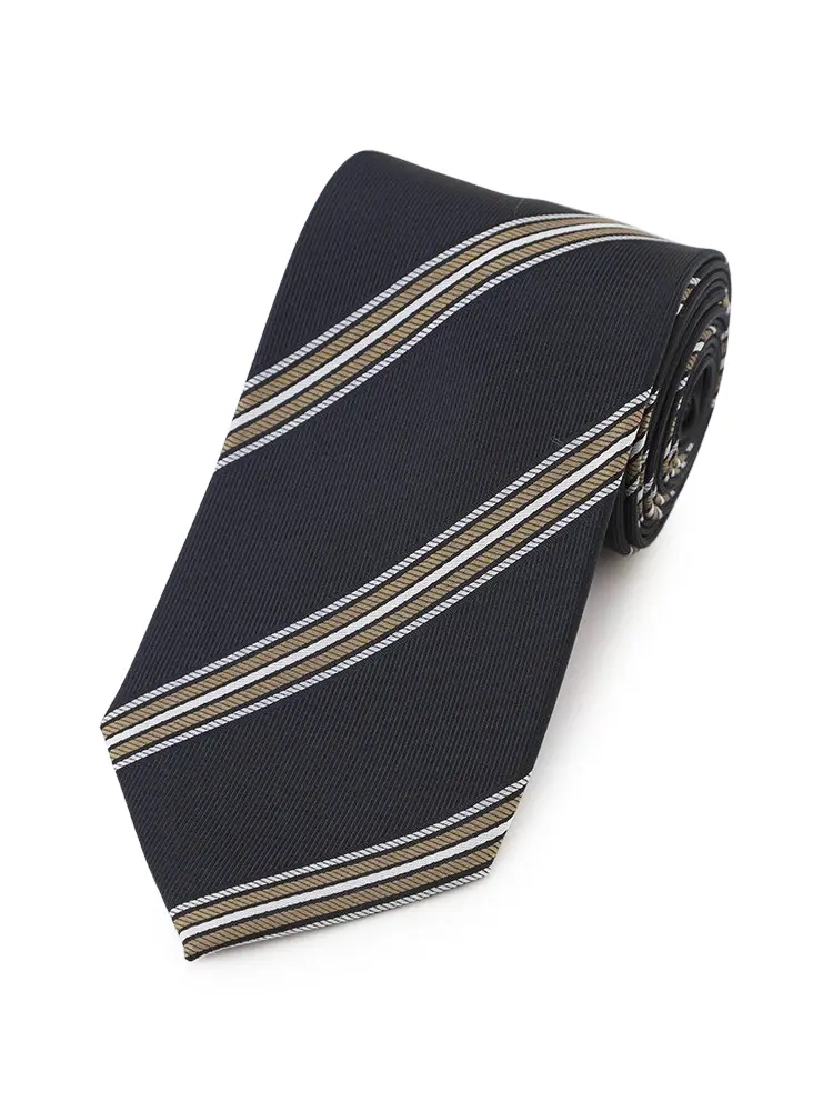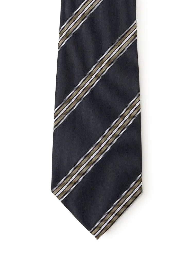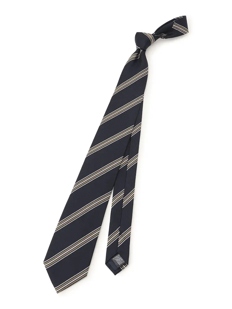 【シルク混】ネクタイレギュラーリクルートタイネイビーストライプnero通年