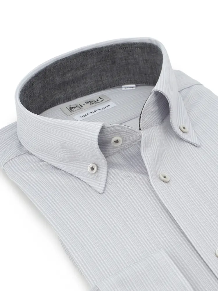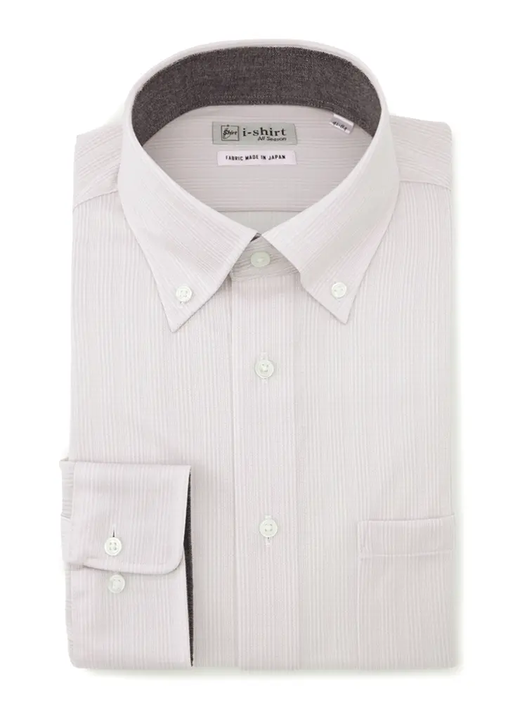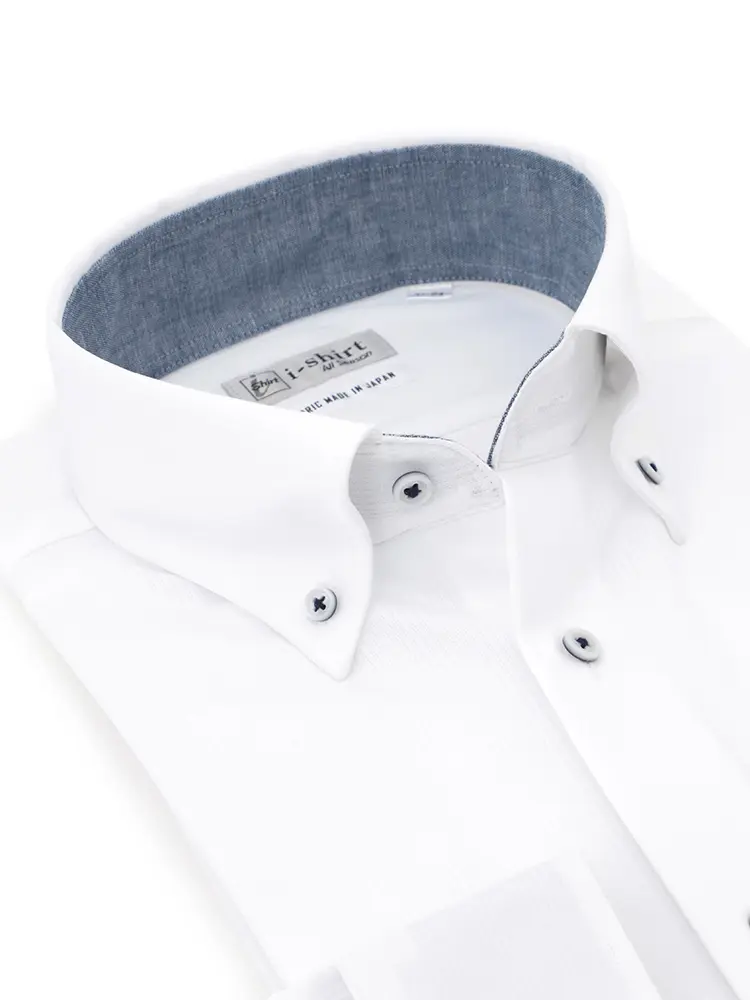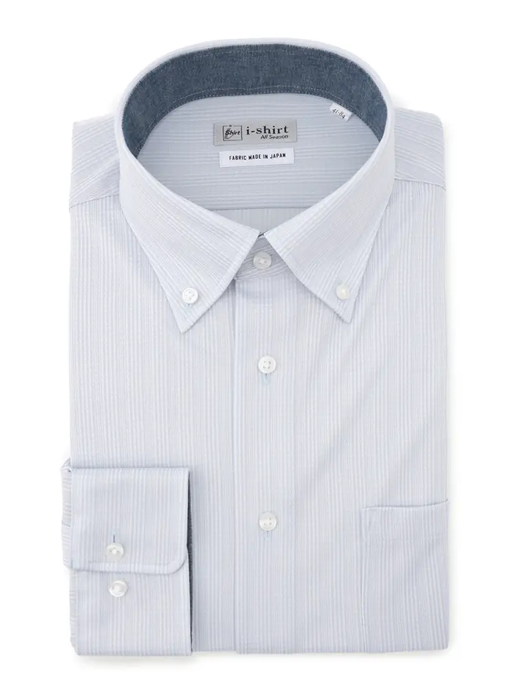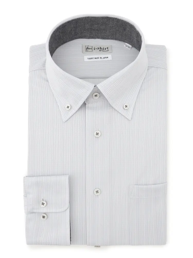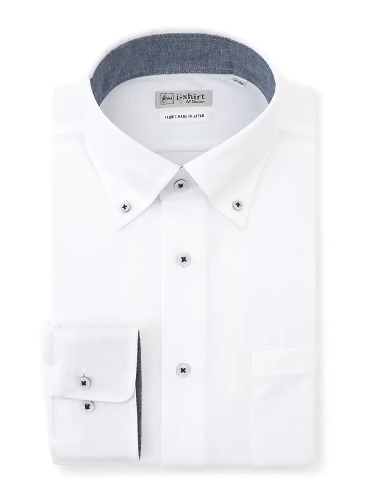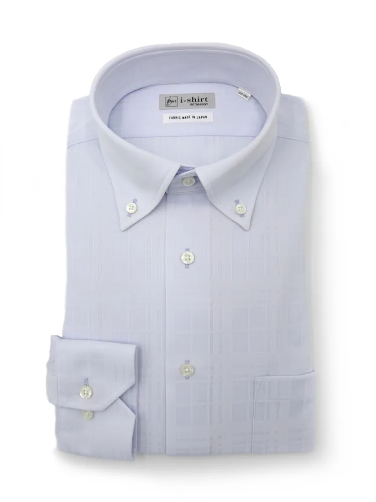 【形態安定】アイシャツ長袖ワイシャツボタンダウン織柄無地i-shirt通年