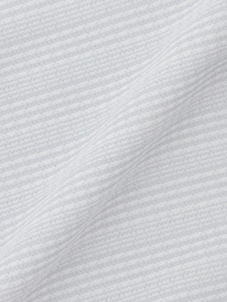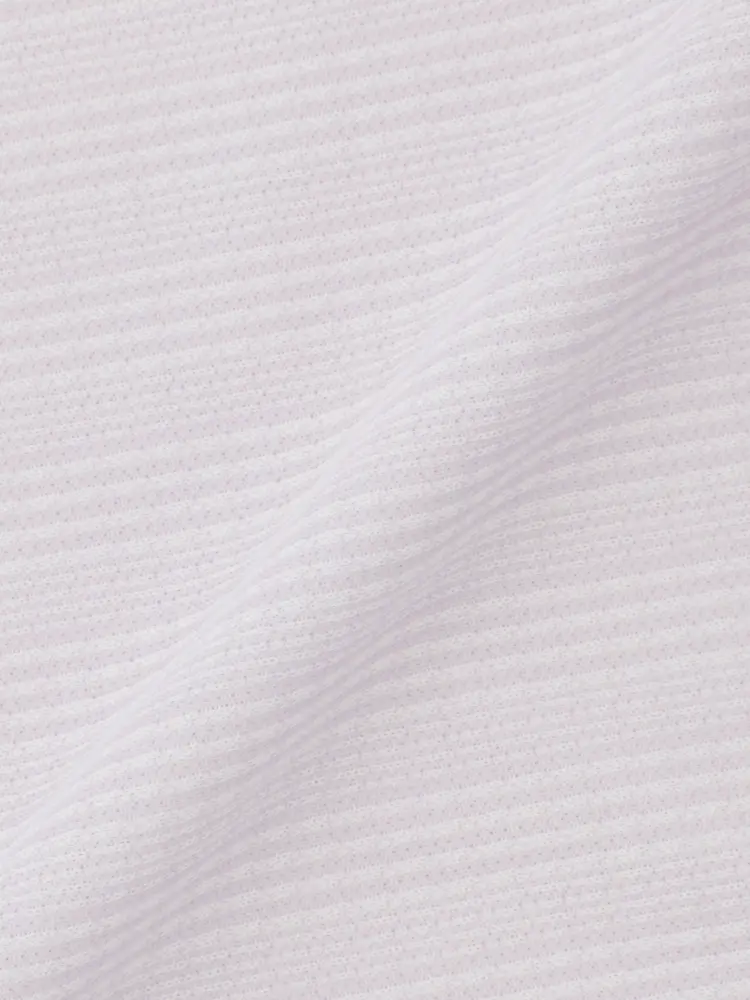 こだわりの日本製生地はソフトなポリエステルニットで、スポーツウェア等にも使われる高機能素材。体の動きに合わせて生地が伸び縮みする高いストレッチ性が特徴で、動作時の負荷が少なく着用ストレスも軽減します。