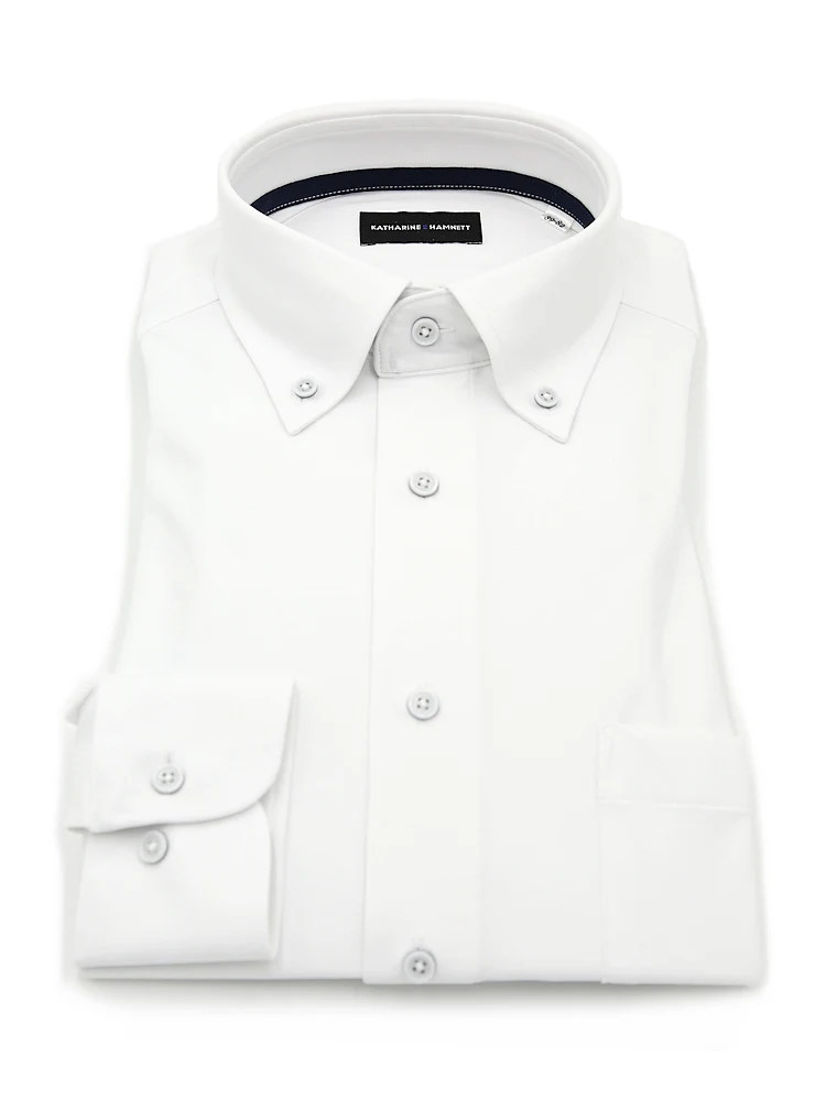 【アイシャツ】 長袖Yシャツ ボタンダウン チェック 抗菌加工 吸汗速乾 形態安定 通年(ホワイト)
