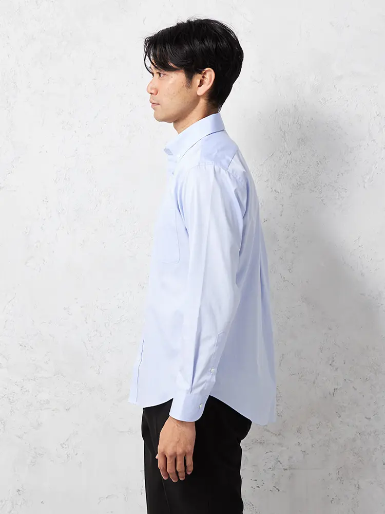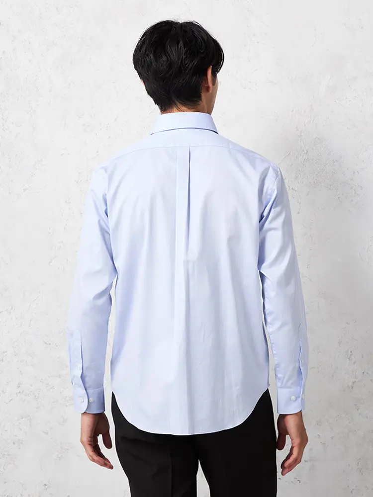 ワードローブにそろえておきたい、定番アイテムの長袖ボタンダウンシャツです。