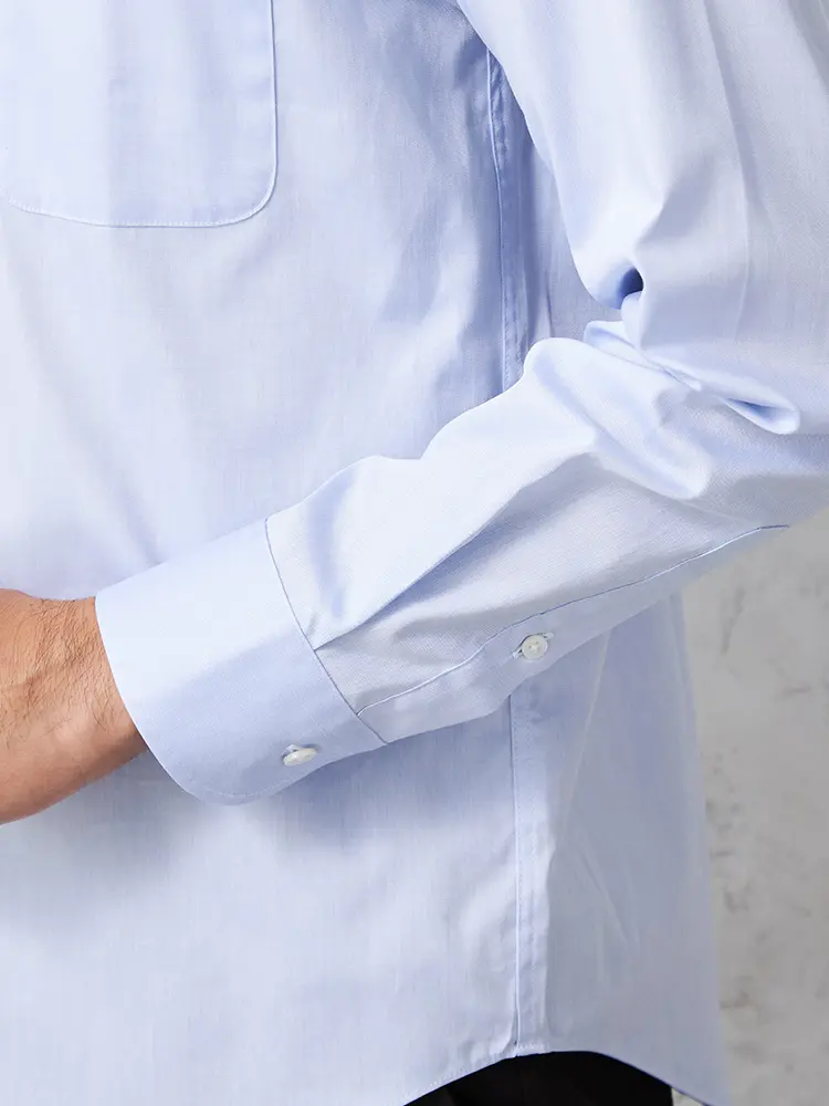 爽やかな印象の綿100% ビジカジシャツは顔映えも良く、あわせるコーデを選ばずお使いいただけます。