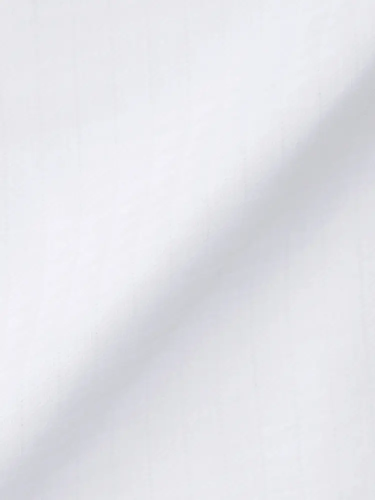 うっすらと浮かぶ縞模様が上品な、すっきりとしたシルエットの長袖白シャツです。