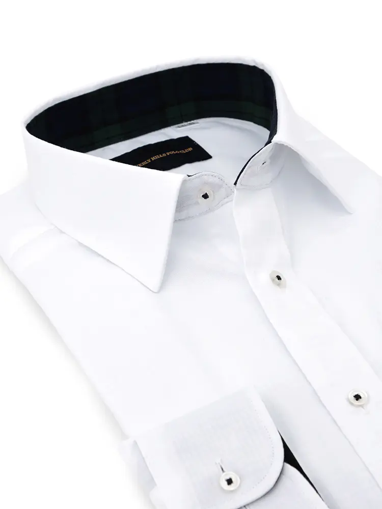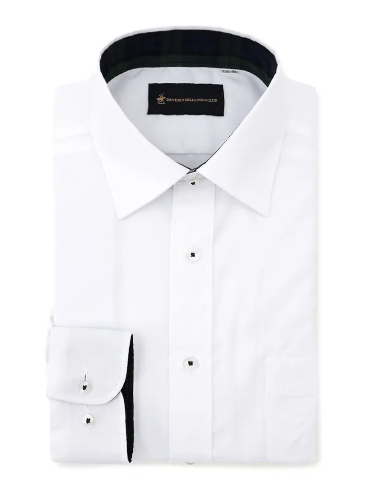 【ビバリーヒルズポロクラブ】 白ドビー 長袖Yシャツ ワイド 形態安定 通年