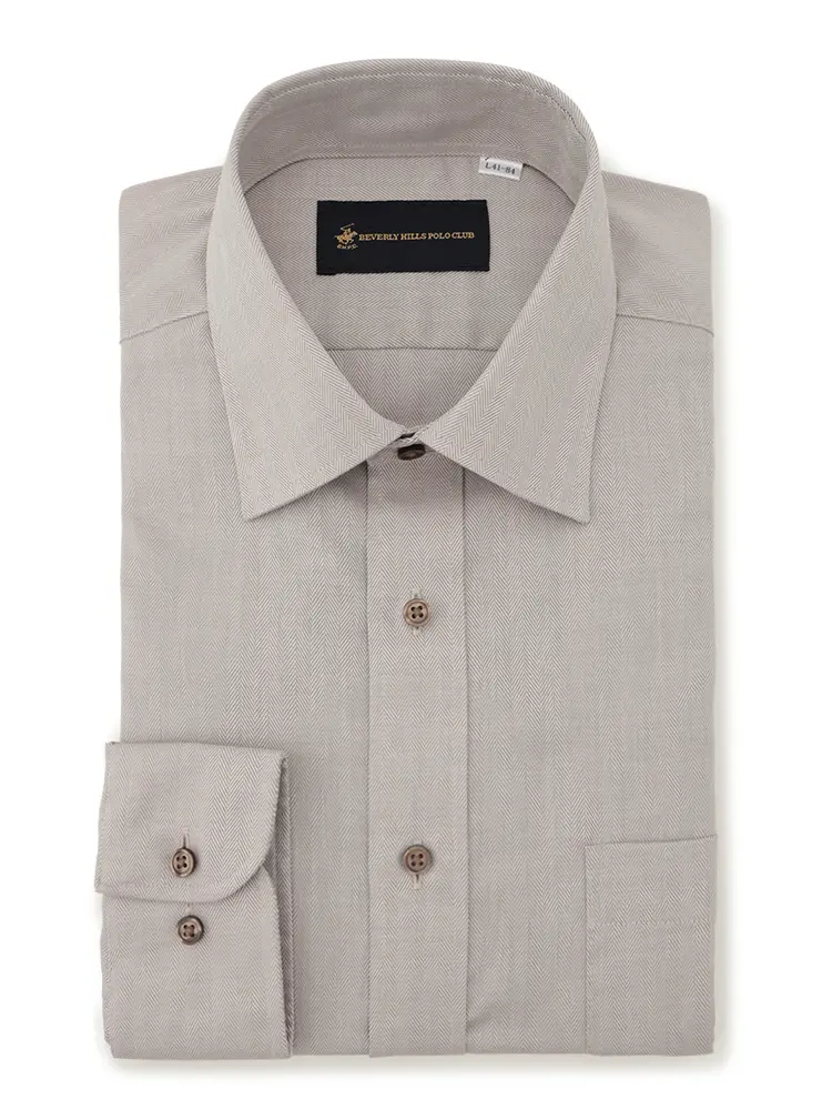 【ビバリーヒルズポロクラブ】ブラウンへリンボン長袖Yシャツワイドヘリンボン形態安定通年