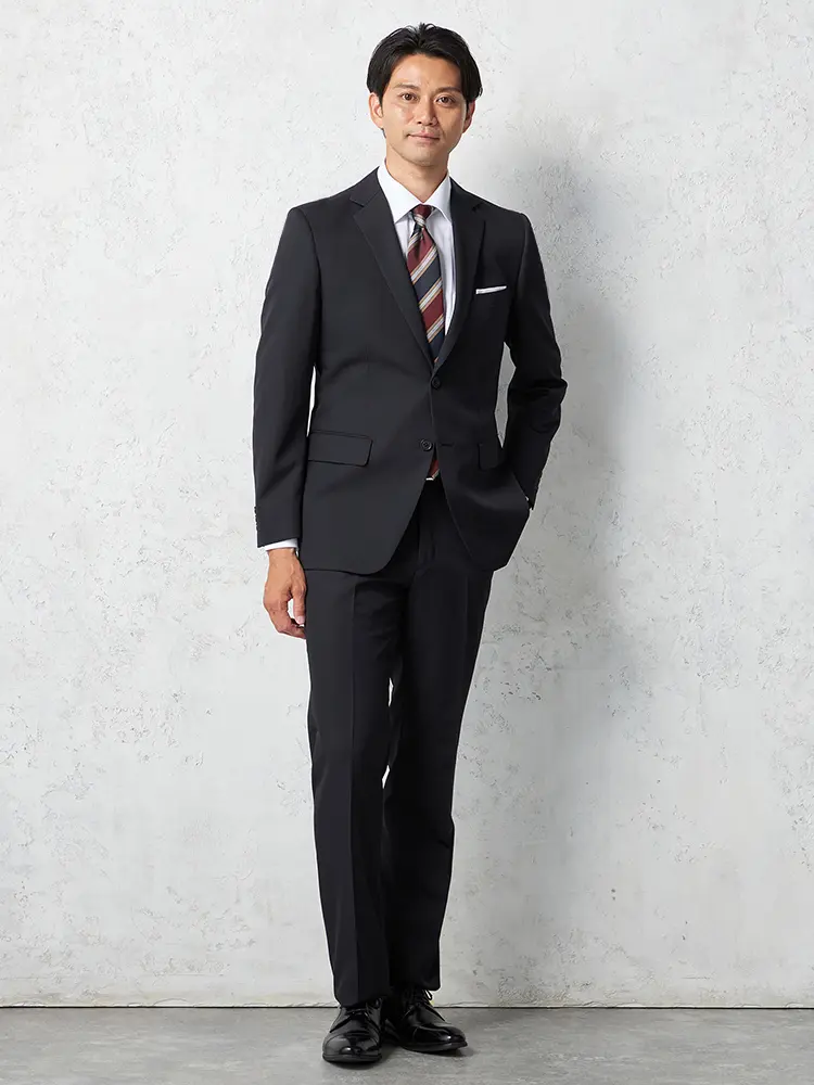【上下ウォッシャブル】スーツ2つボタン軽量表地ストレッチ素材ワンタック織柄無地nero【i-Suit-アイスーツ-】春夏【スリムデザイン】