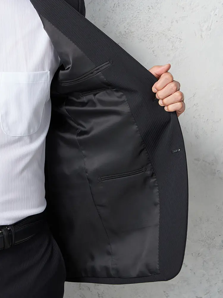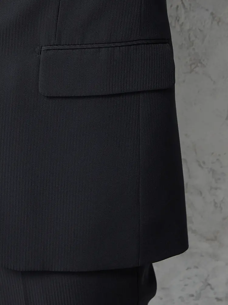 切り込みが1本のセンターベントデザインです。細身でスッキリとしたシルエットが特徴で、快適な着心地を提供します