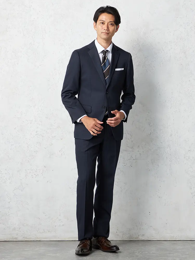 【即納】【WEB限定】スーツ2つボタンネイビーシャドウストライプ上下ウォッシャブル3シーズン対応