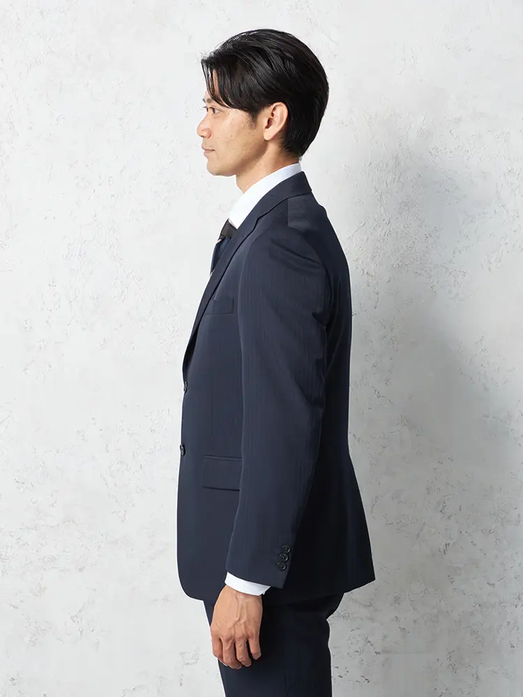 切り込みが1本のセンターベントデザインです。細身でスッキリとしたシルエットが特徴で、快適な着心地を提供します