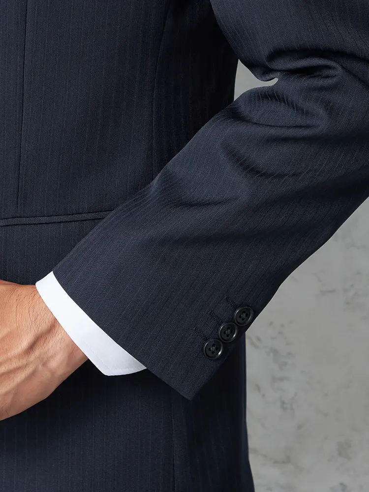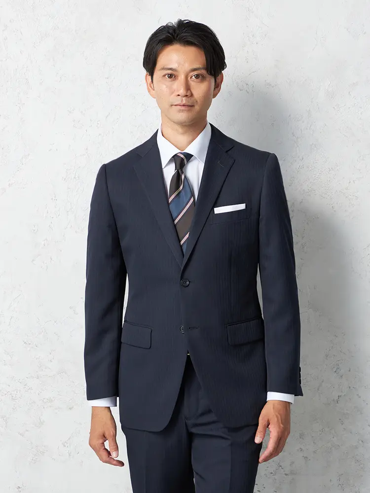 【即納】スーツ2つボタン【WEB限定】上下ウォッシャブルネイビーストライプ