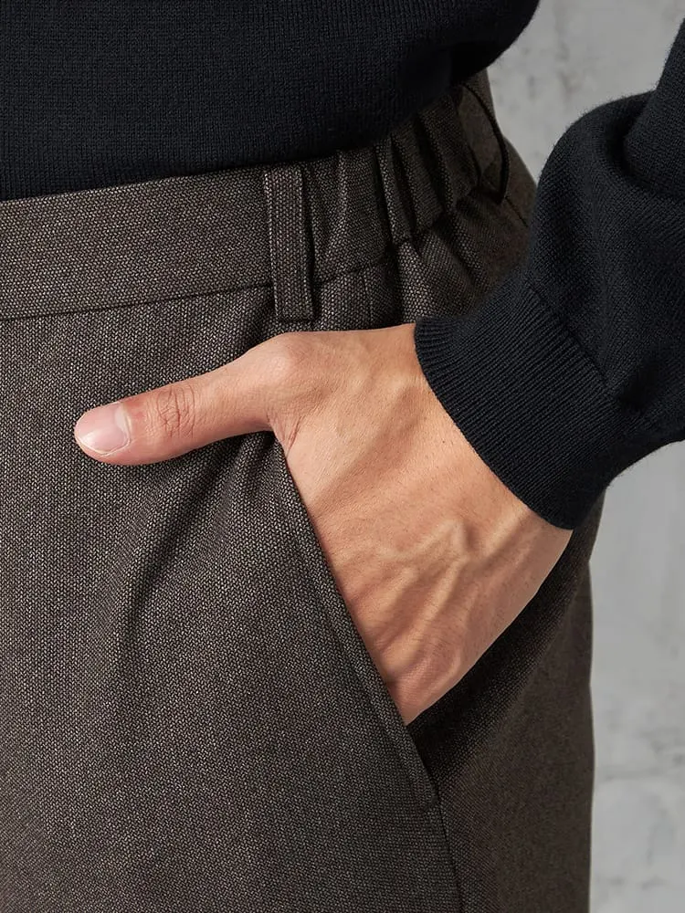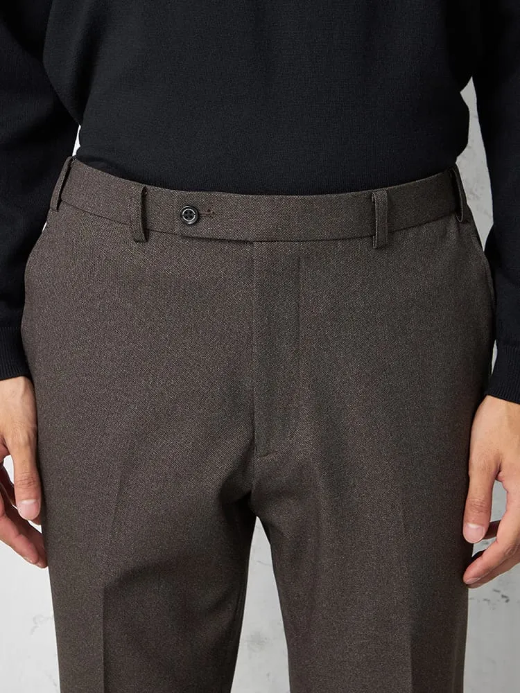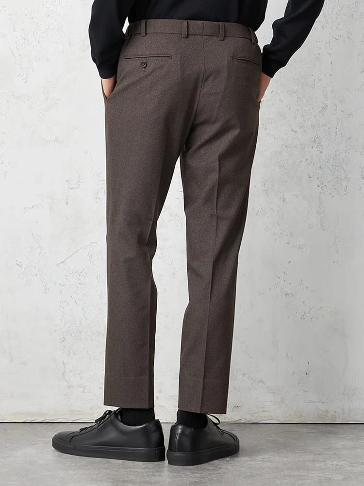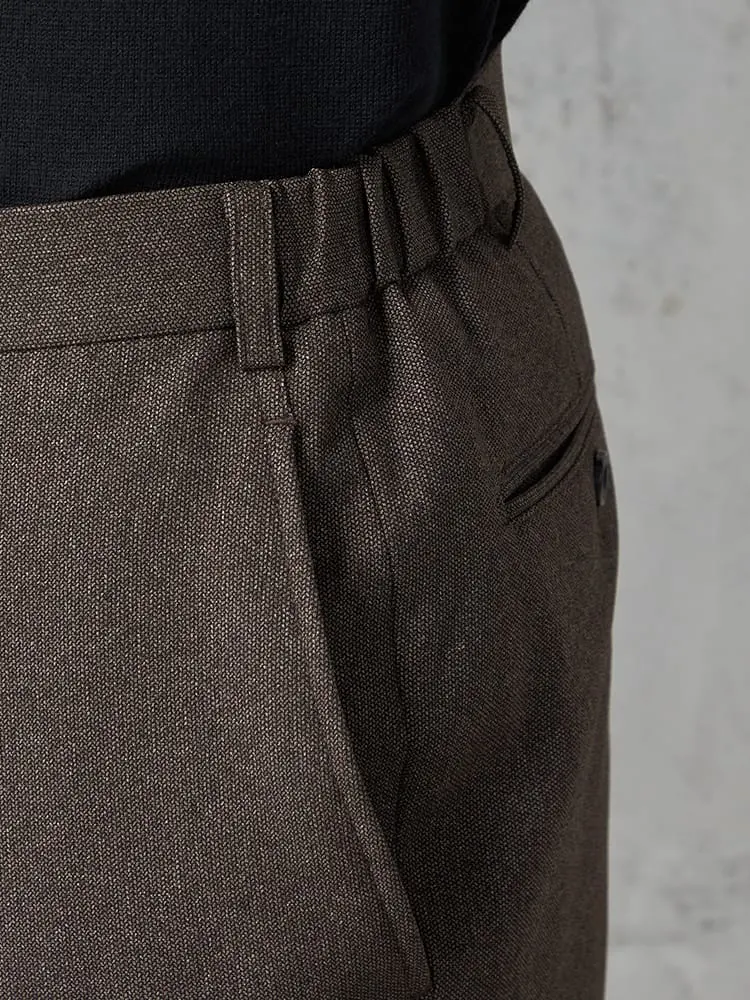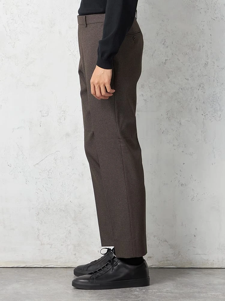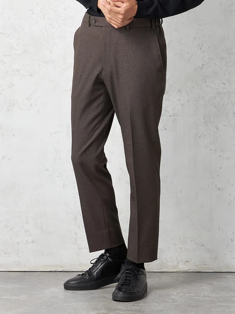 ブラウンの杢柄が柔らかな雰囲気のスラックス。