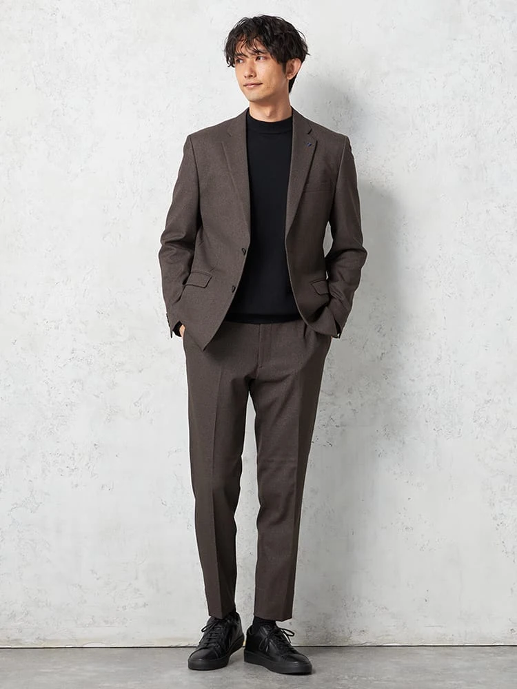 同素材のジャケットに加え、シャツやセーターも合わせやすくなっています。