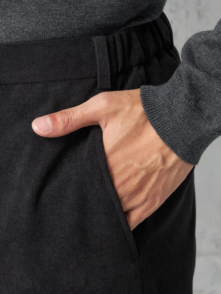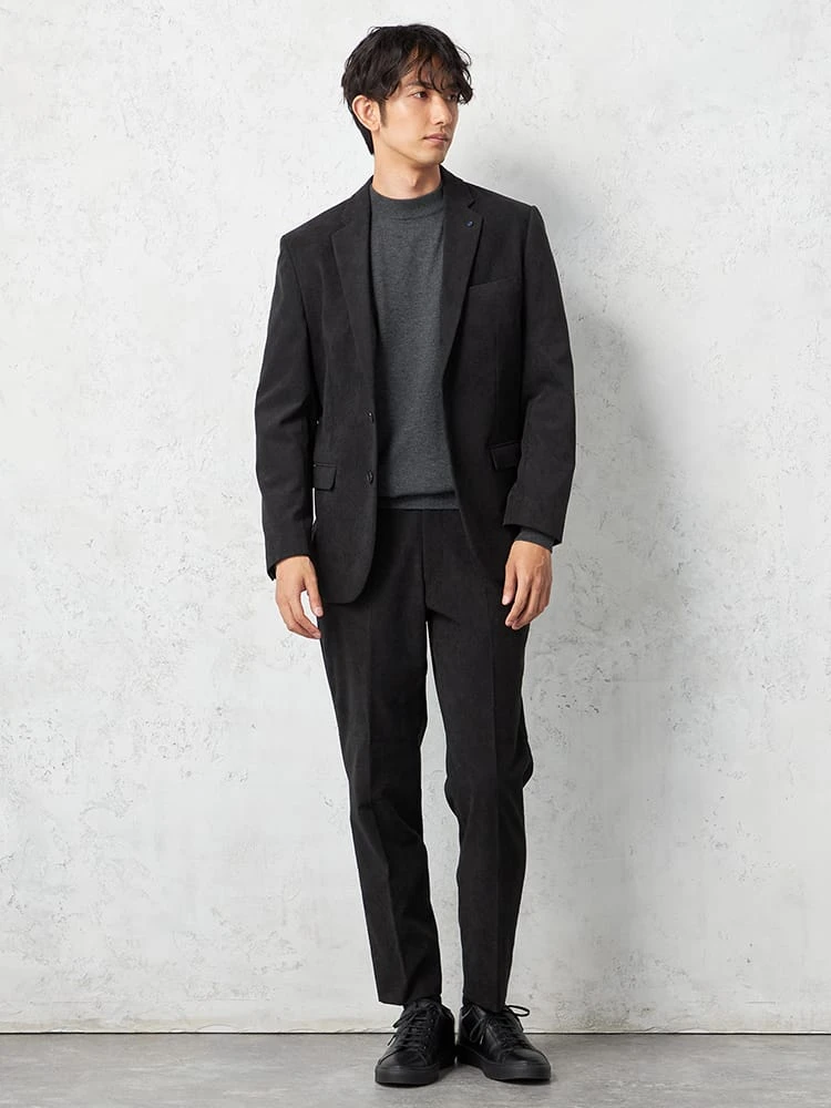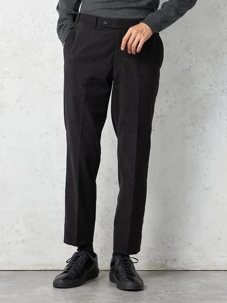 細畝のコーデュロイ生地で仕立てたスラックス。