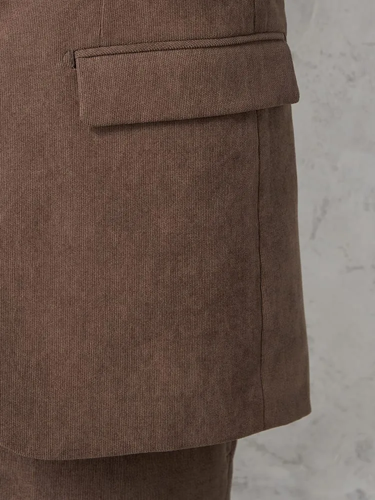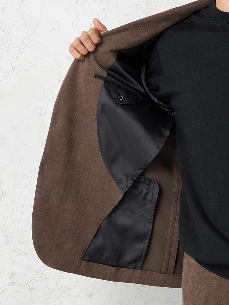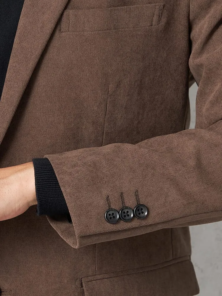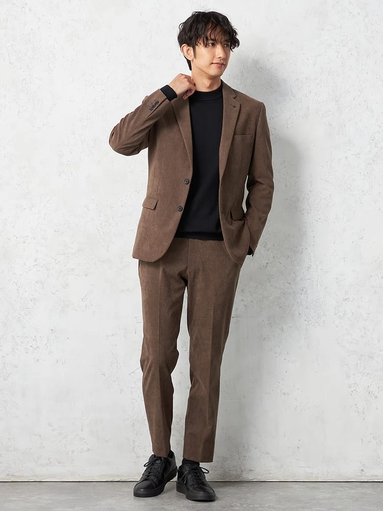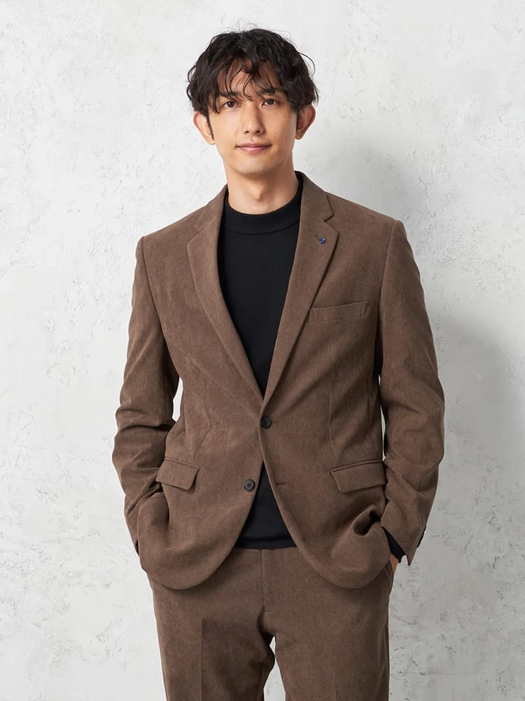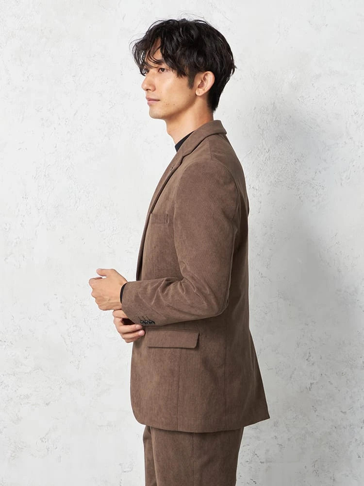 明るめのブラウンがエレガントな、コーデュロイ素材のジャケット。