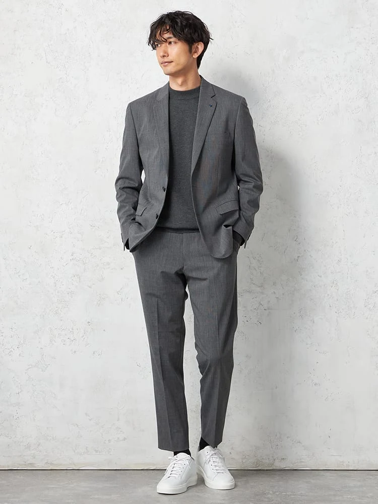 基本はベーシックで着回しやすく、同素材のスラックスの他にも、さまざまなボトムスにマッチ。