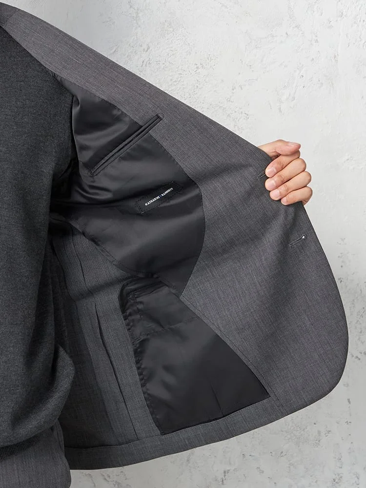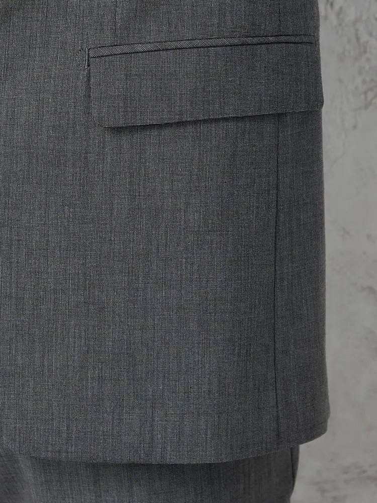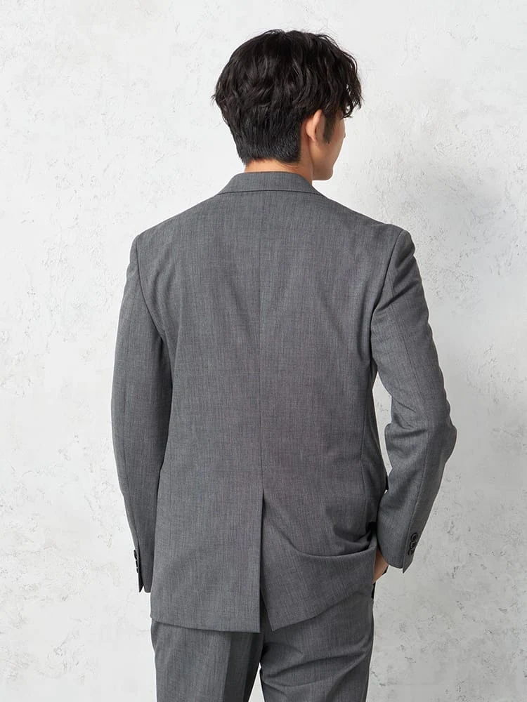 切り込みが1本のセンターベントデザインです。細身でスッキリとしたシルエットが特徴で、快適な着心地を提供します