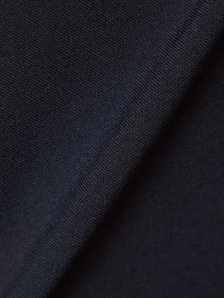 パンツの腰回りに生地の折り込みがなく、スッキリとしたシルエットを実現します。シンプルで洗練された印象を与え、すっきりとした着こなしが可能です。