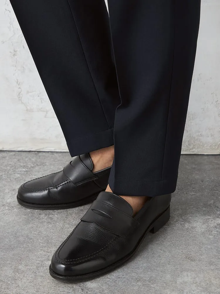 知的で洗練された雰囲気をまとうノータックのスラックス。