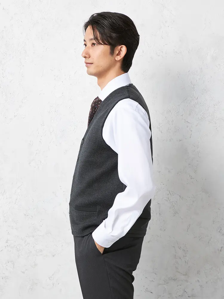 ニット地と中わた素材を組み合わせた上品なベストです。