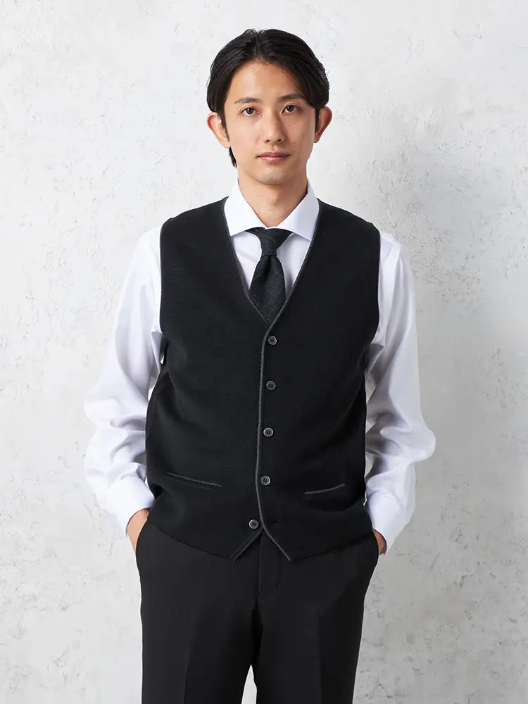 ニット地と中わた素材を組み合わせた上品なベストです。