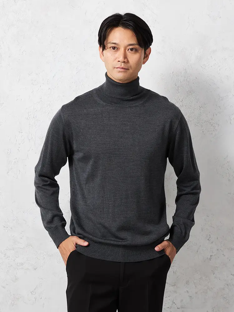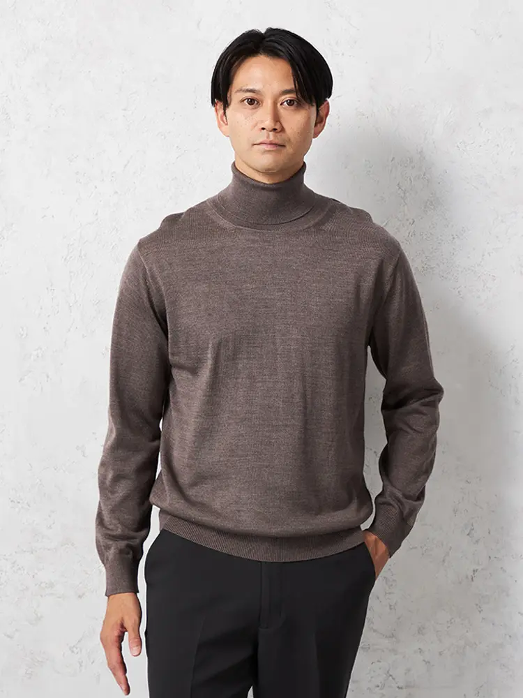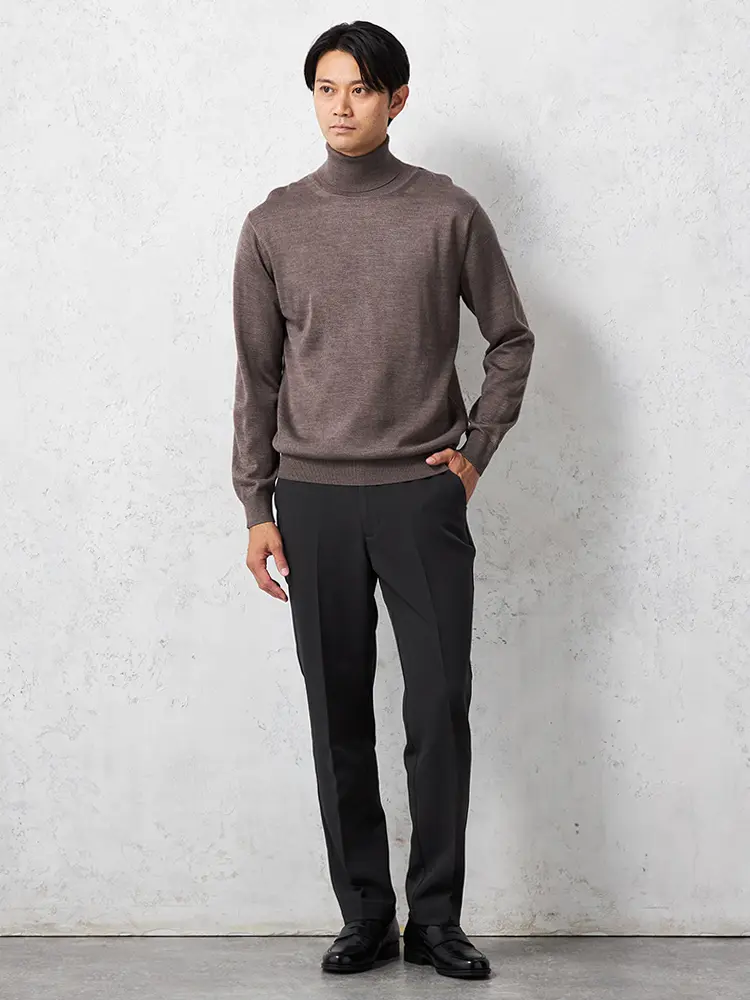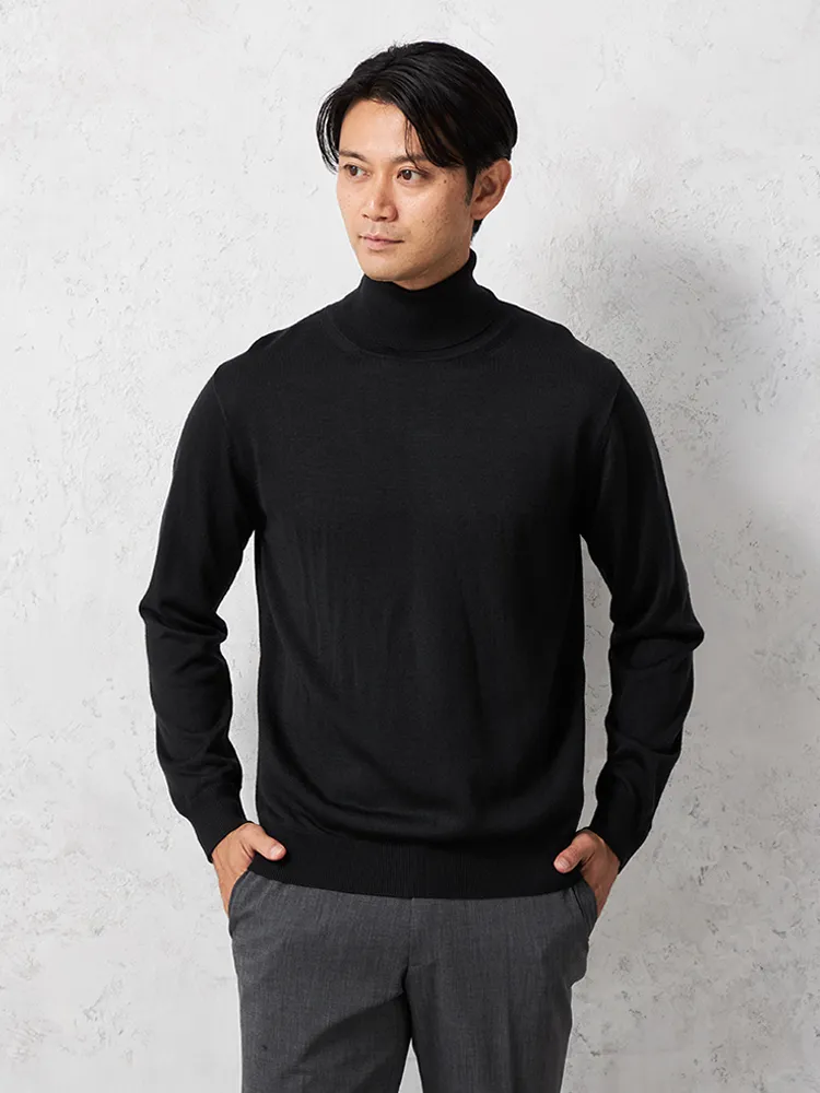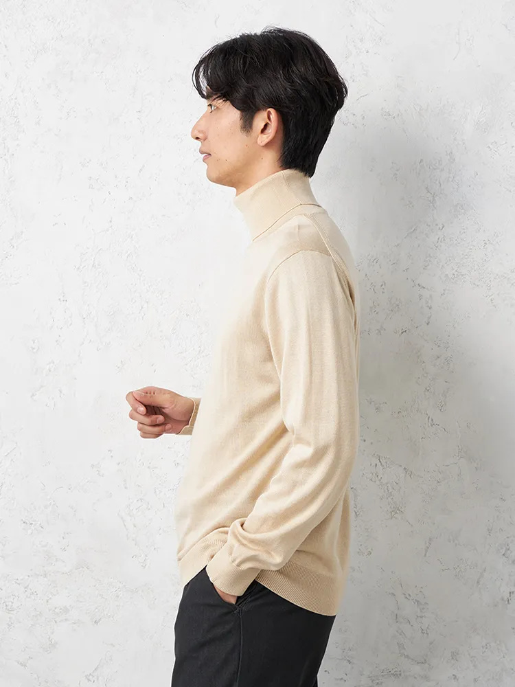 静電気の発生や毛羽立ちを抑えてくれる、アンチピリングと静電気対策を備え保温性もあるタートルネックのセーター。