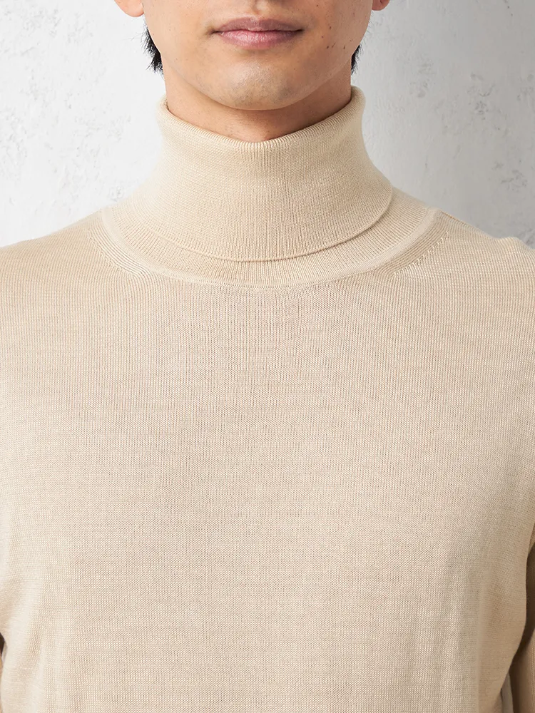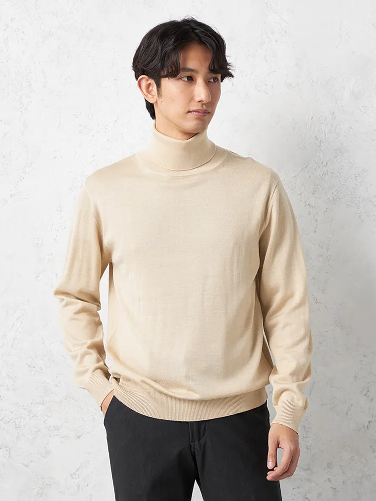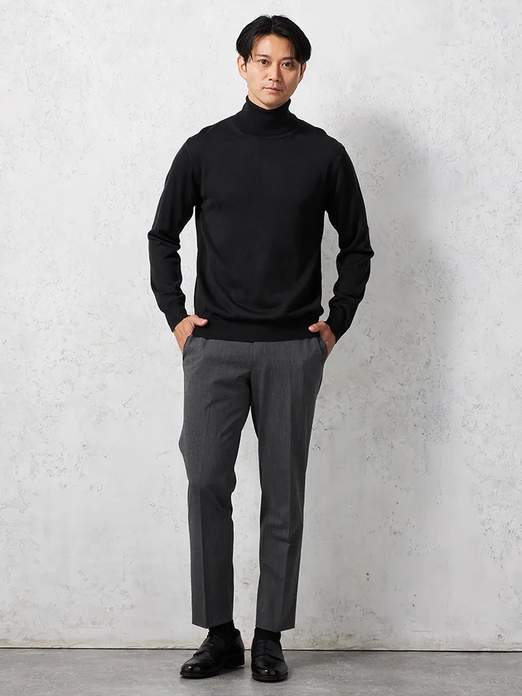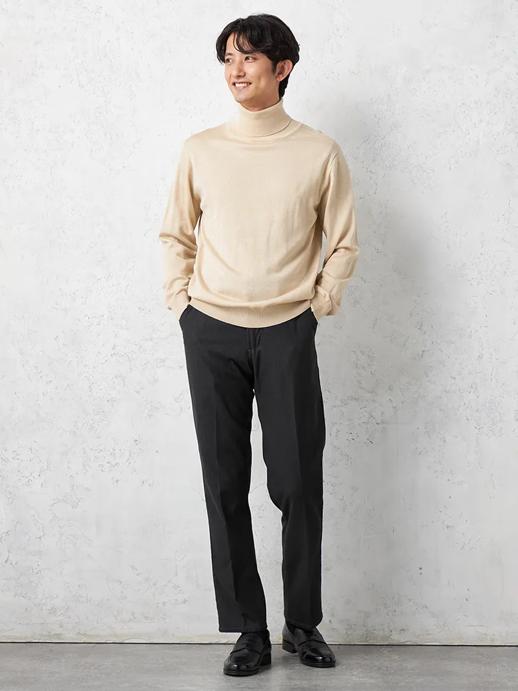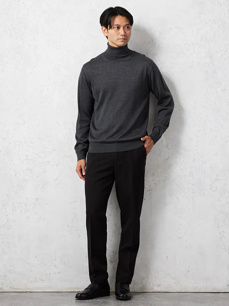 静電気の発生や毛羽立ちを抑えてくれる、アンチピリングと静電気対策を備え保温性もあるタートルネックのセーター。