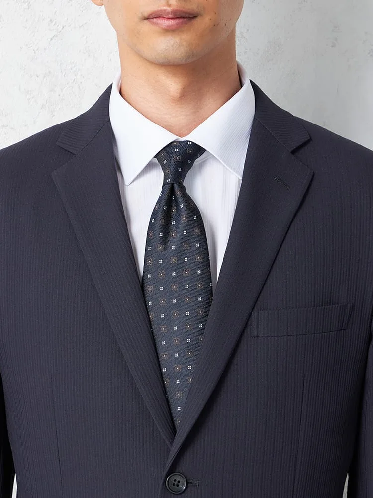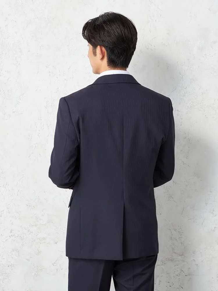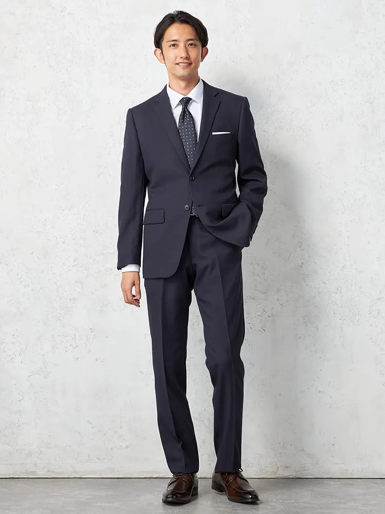 【即納】【WEB限定】スーツ2つボタンネイビーシャドウストライプ上下ウォッシャブル3シーズン対応