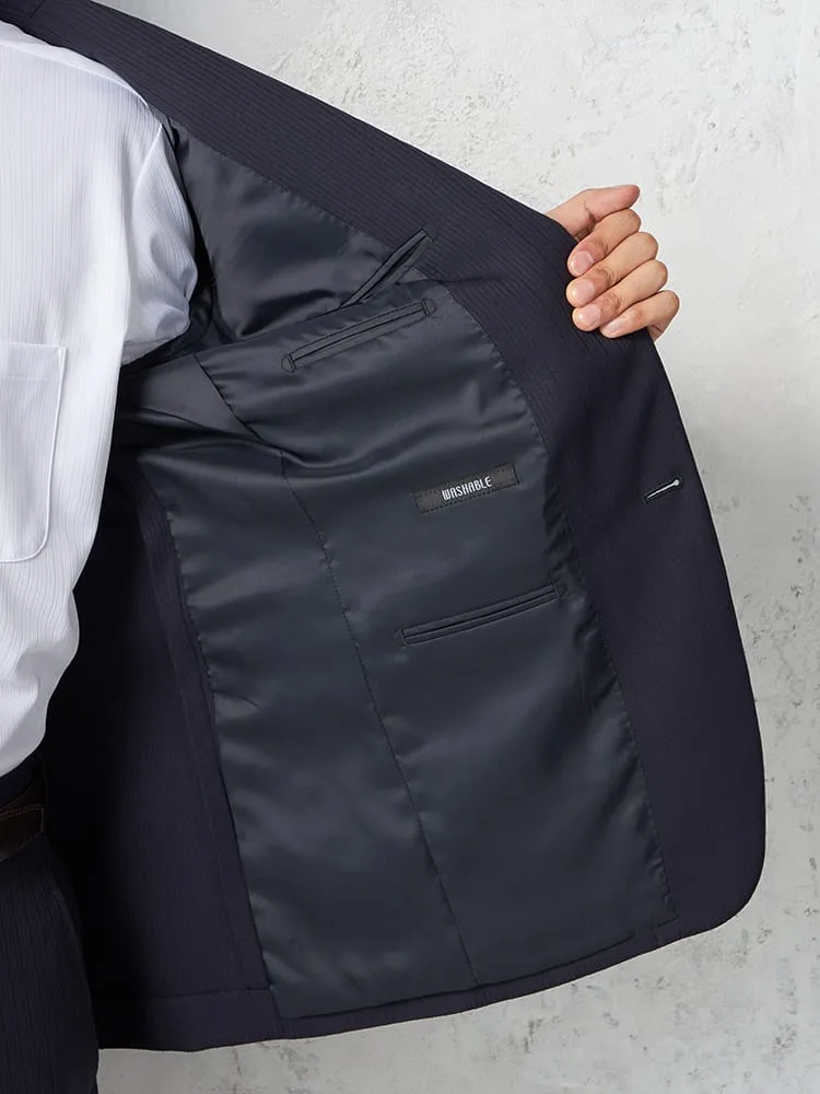 【即納】スーツ2つボタン【WEB限定】上下ウォッシャブルネイビーストライプ