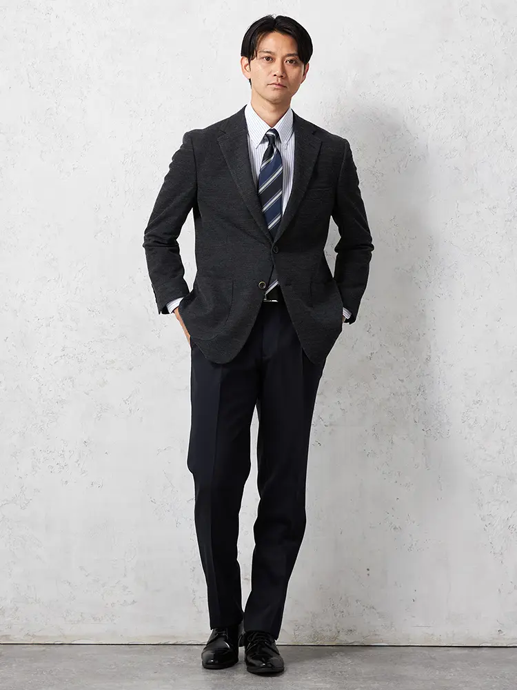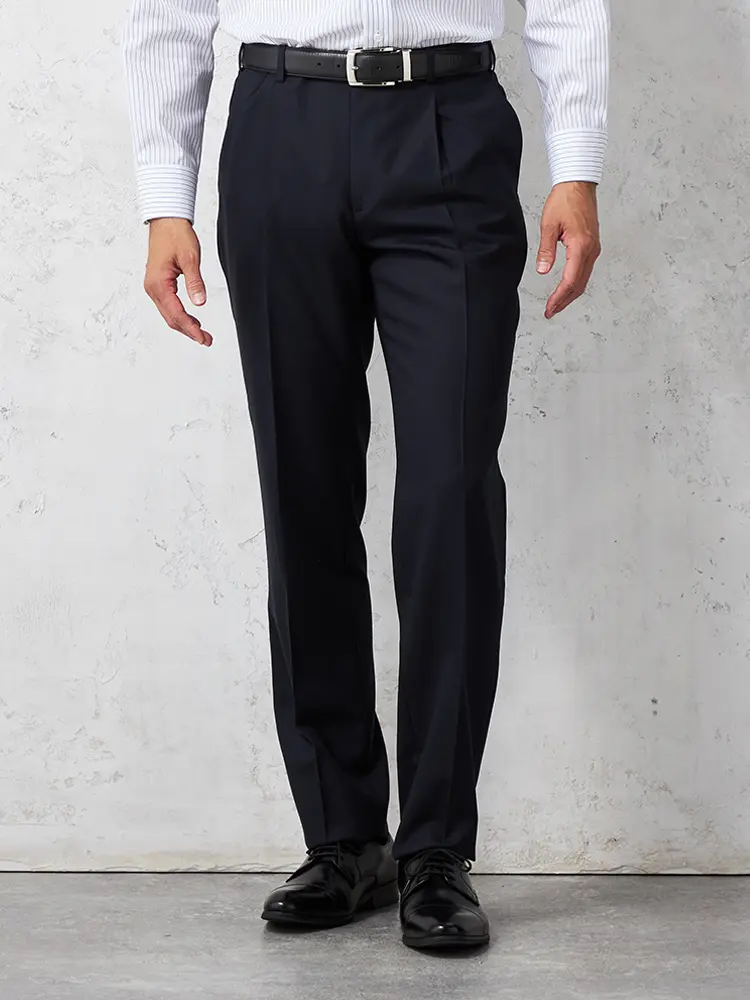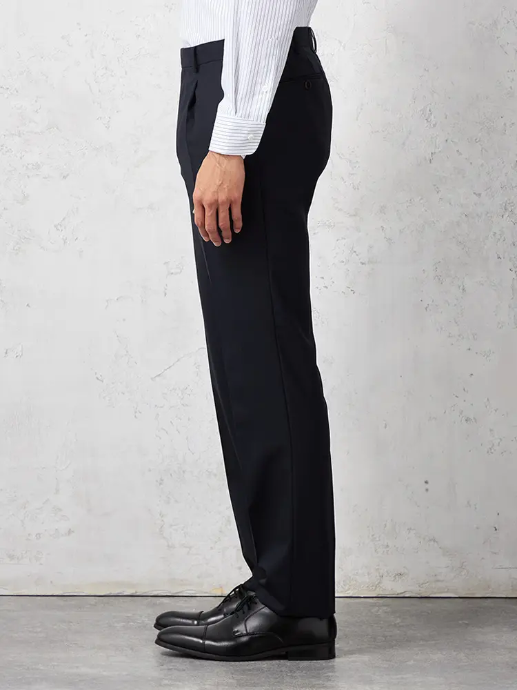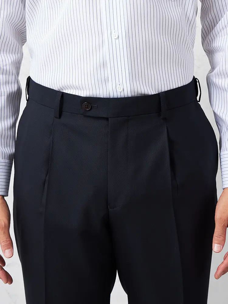 ビジネススタイルの定番にしたいイタリアマルラーネ社製ウール生地で仕上げたワンタックウエスト伸縮機能のスラックス。