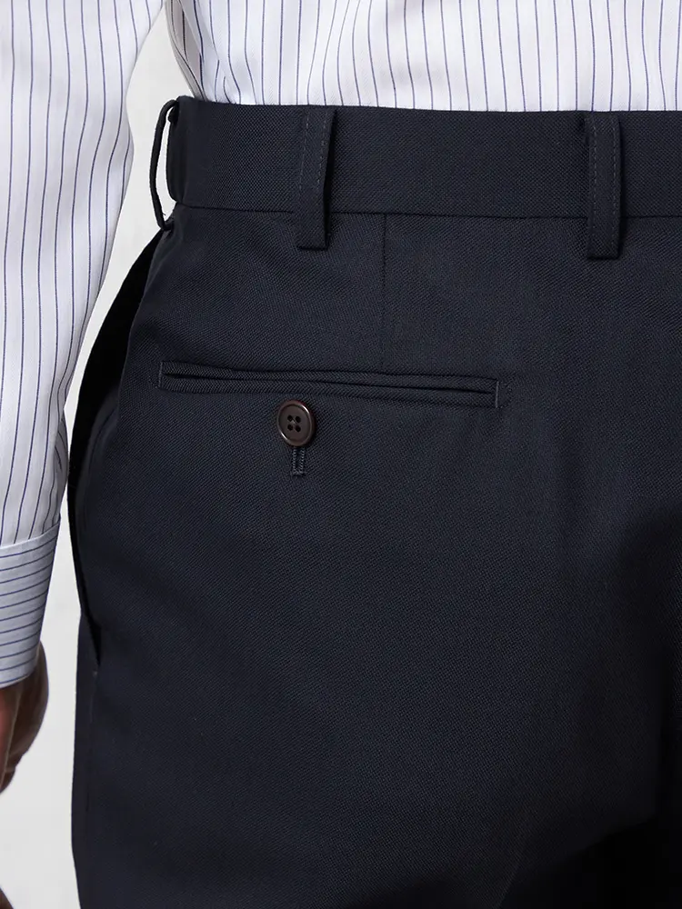 【ウール100%】パンツワンタックイタリアマルラーネ社製生地ネイビー無地RUCKENBACCHAR