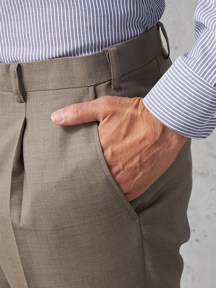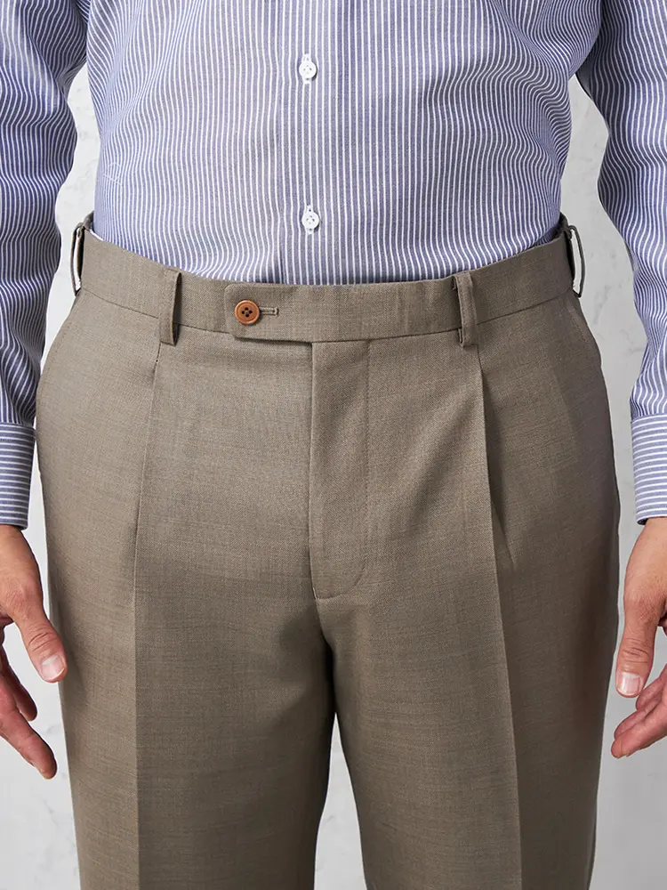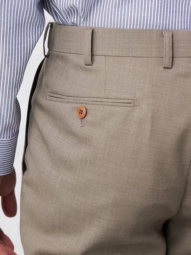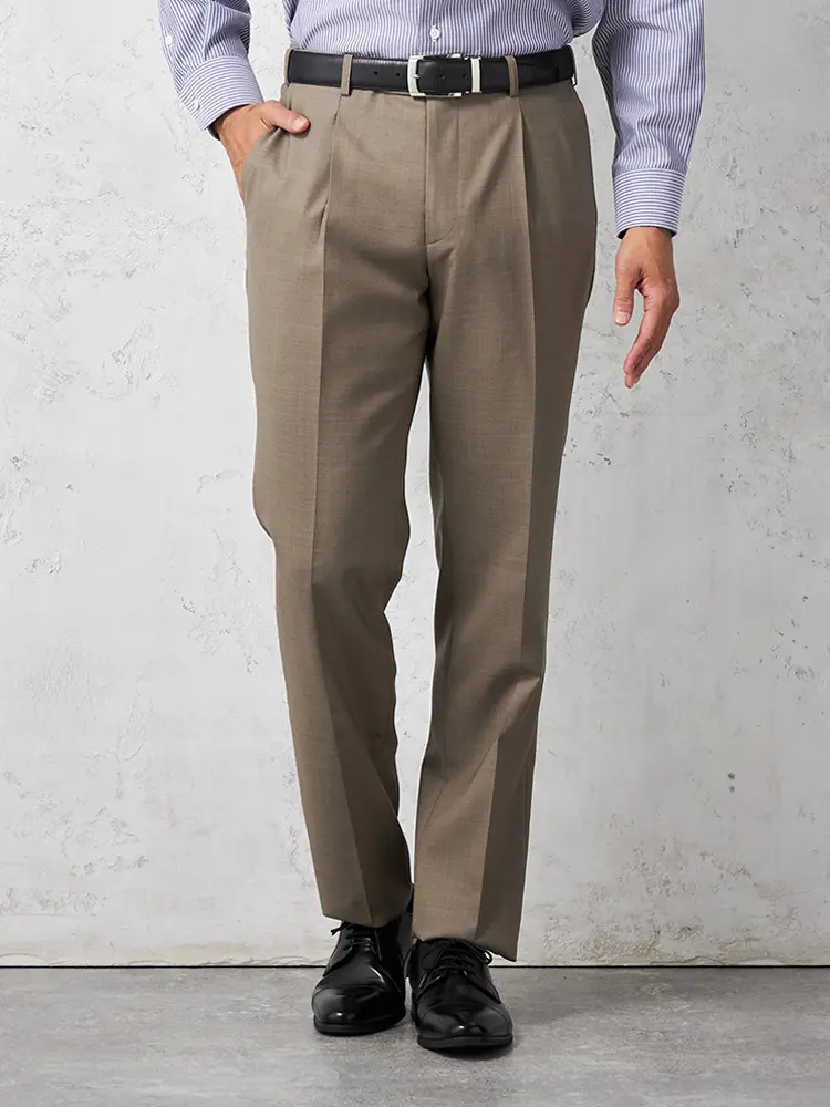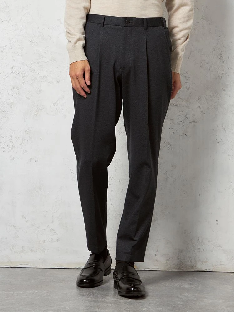 ビジネススタイルの定番にしたいイタリアマルラーネ社製ウール生地で仕上げたワンタックウエスト伸縮機能のスラックス。