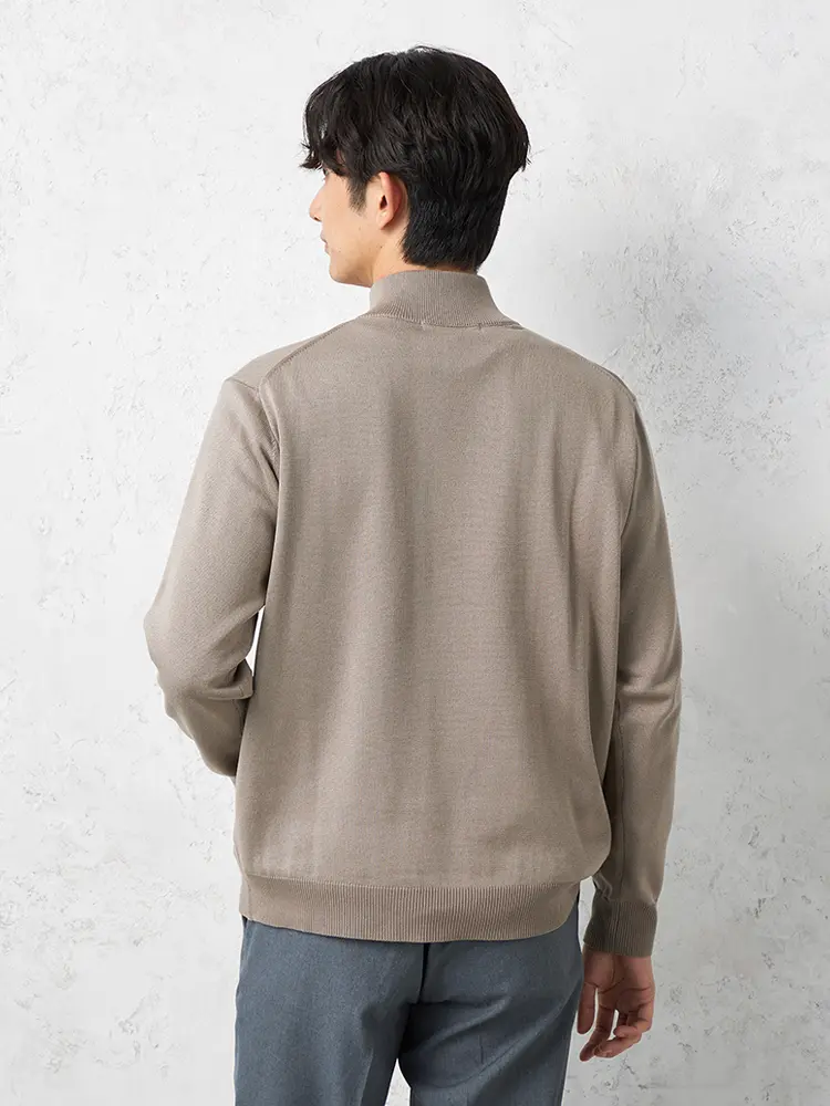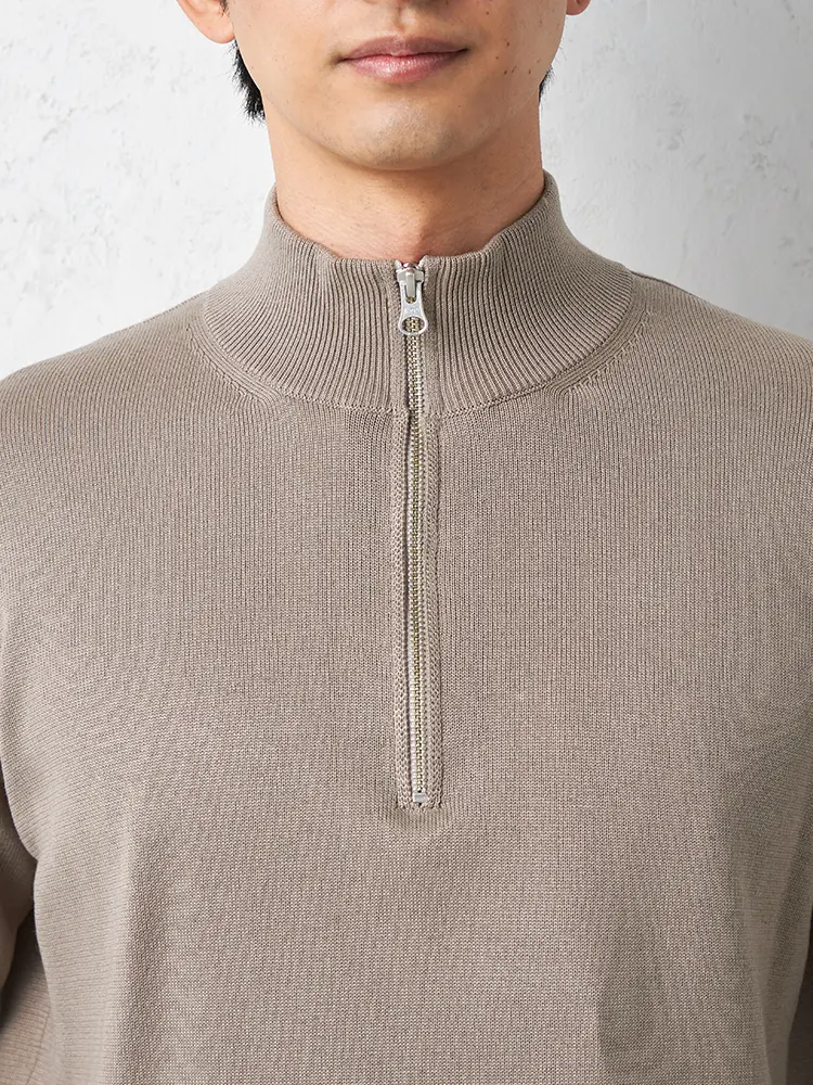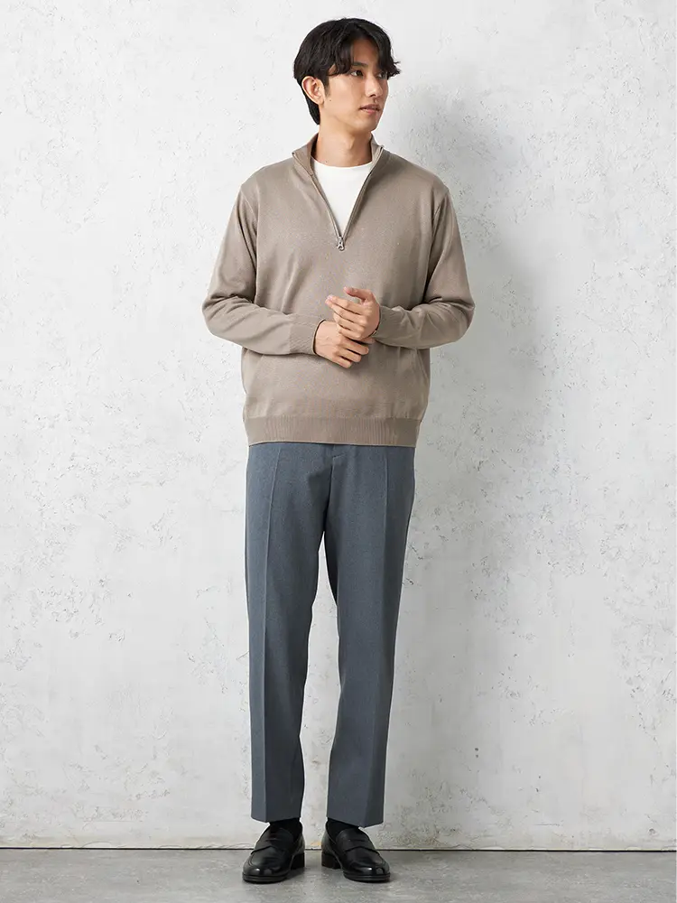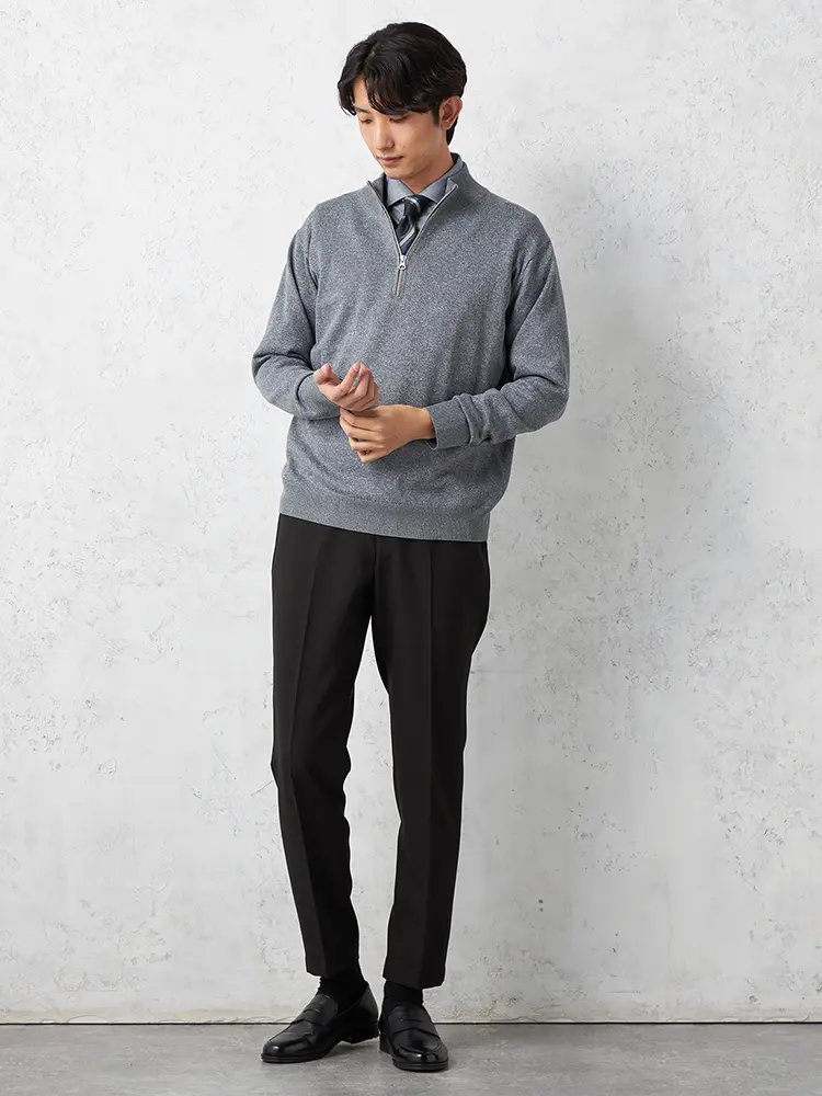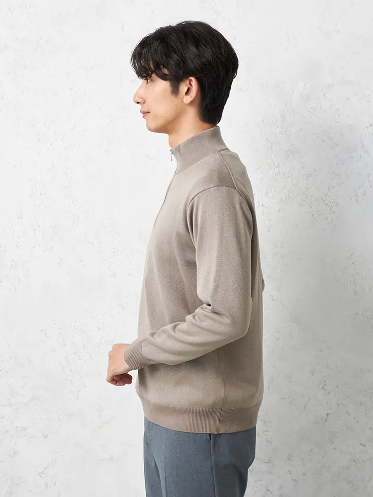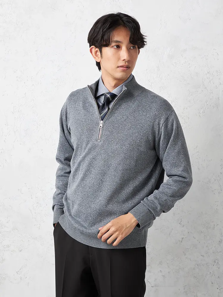 首元にはハーフジップを採用し、ほどよいカジュアルさをプラスしました。