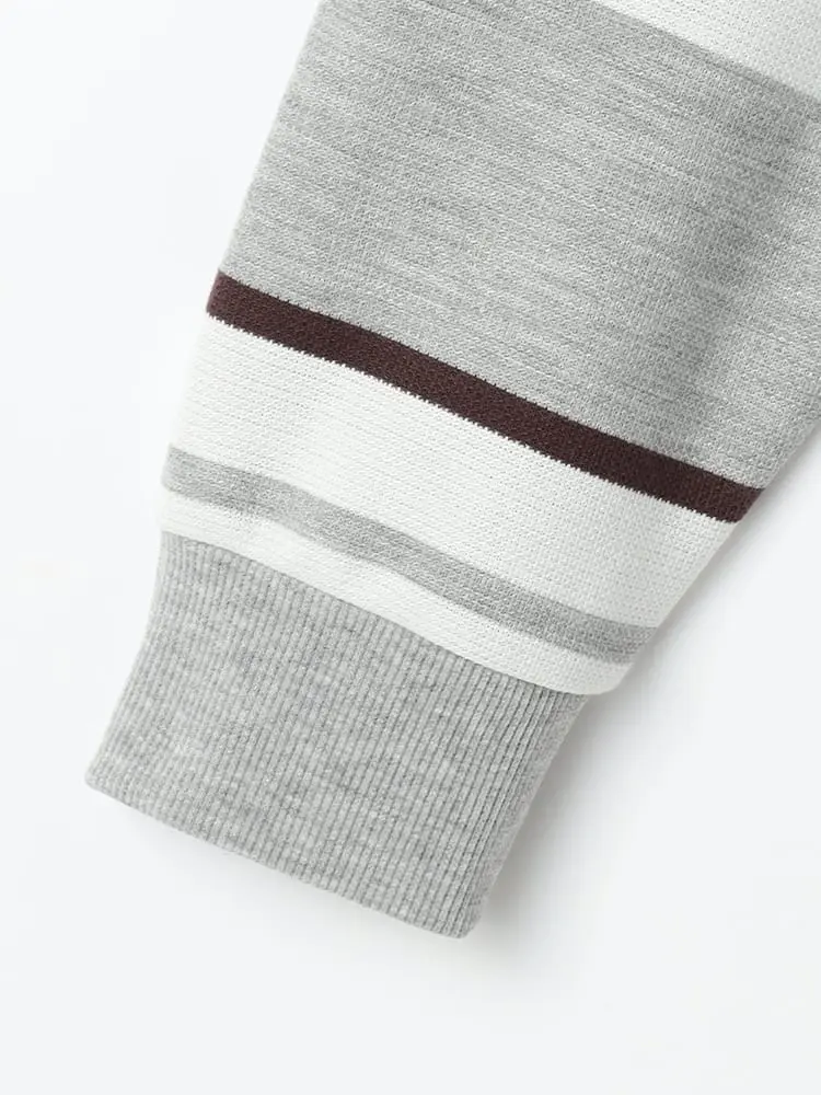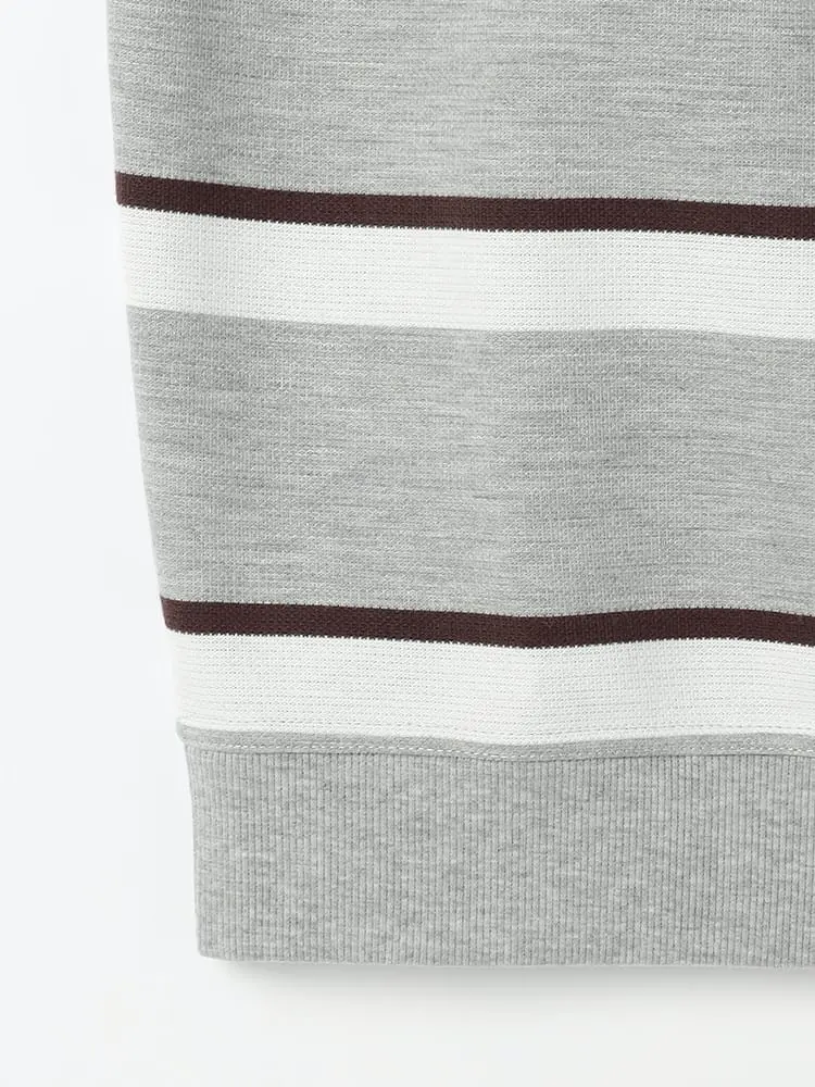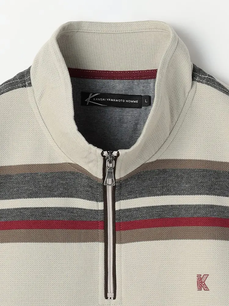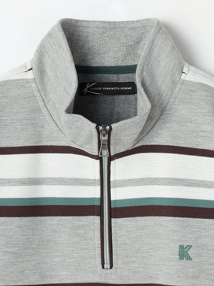 【カンサイ・ヤマモト】ボーダージップトレーナー カジュアルインナー 秋冬(M.グレー)