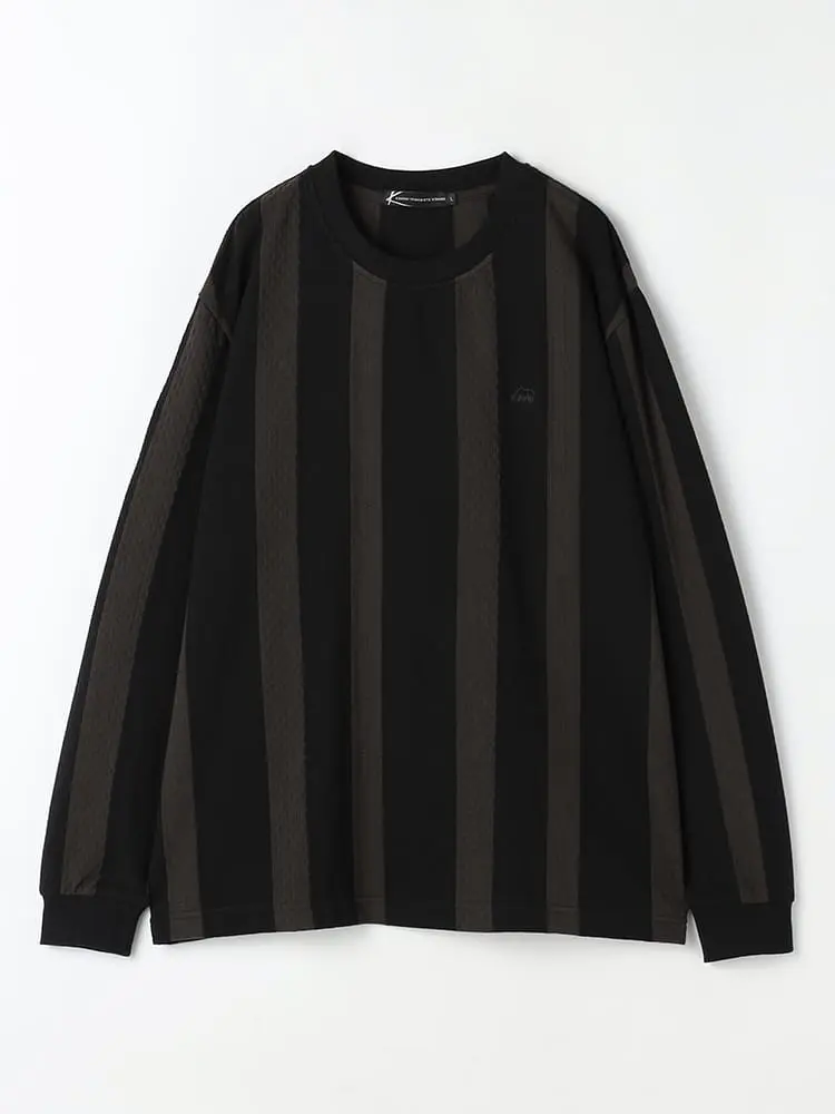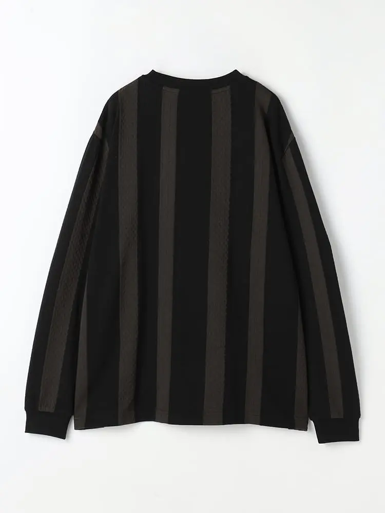 リズミカルな印象のピッチでストライプ柄をデザインしたトレーナー。