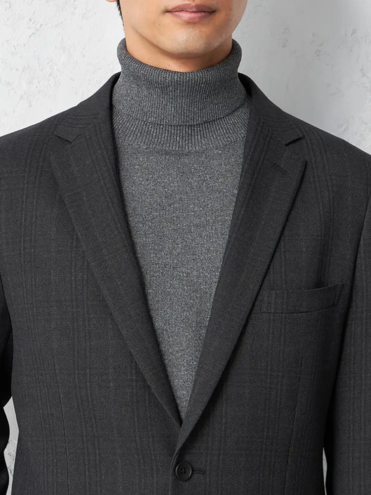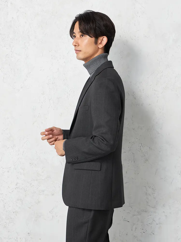 【TOKYORUN】 ジャケット シャドーチェック ジャケット 2つボタン ウォッシャブル 軽量 秋冬(C.グレー)