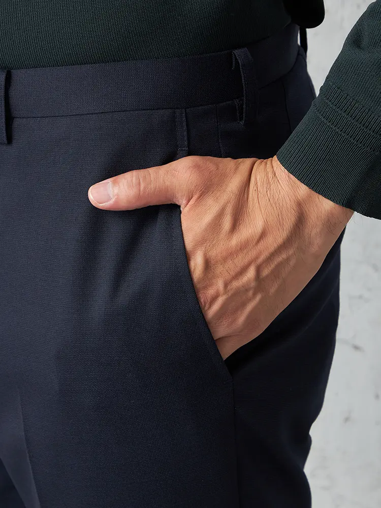 腰回りはノータックで仕上げた、スマートなシルエットです。
