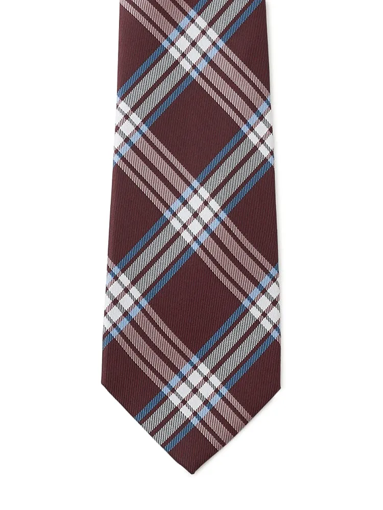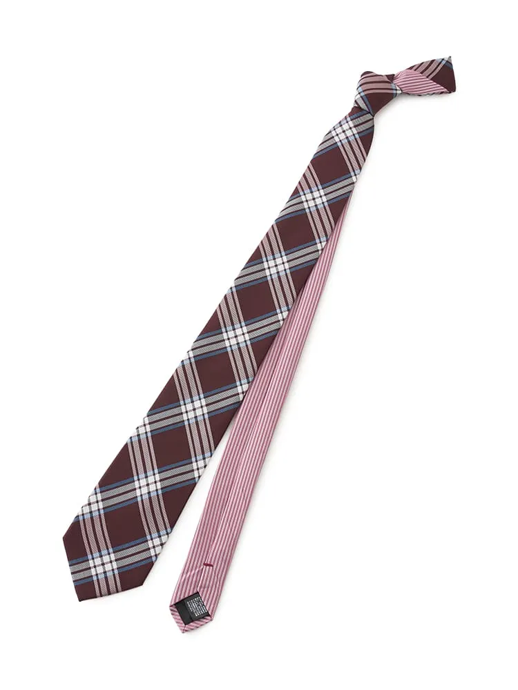 エレガントなワインカラーを基調とした、バイアスチェック柄のネクタイです。