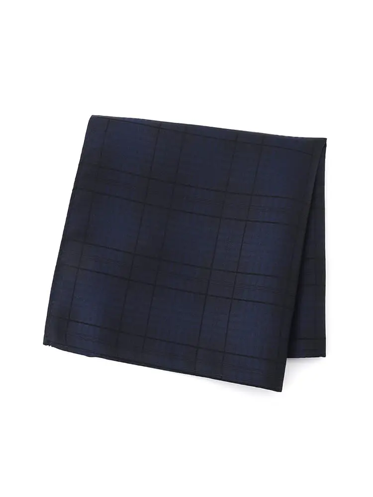落ち着いたチェック柄が、紳士のスーツスタイルを格上げするハンカチーフ。